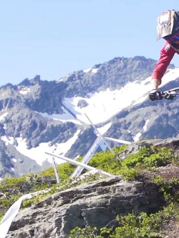 En compagnie du freerideur Graham Agassiz, Max McCormac inaugure du haut de ses 8 ans le nouveau Kona Process 24 pouces...