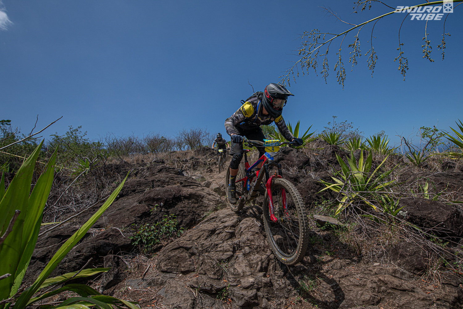Pour juger d’une performance, il est toujours bon de jauger de la concurrence. Les protagonistes qui accompagnent Damien Oton sur le podium donnent une belle légitimité. Deuxième : François Bailly-Maître, autre habitué des Megavalanche, jamais vainqueur mais souvent très placé qui s’était imposé ici à la Réunion en 2013. Un ancien vainqueur, ça donne d’autant plus de coffre à la victoire du jour.  Troisième : Kilian Bron, déjà sérieux prétendant à la victoire finale cet été à l’Alpe d’Huez. Meilleur temps aux qualifications et au coude à coude avec le vainqueur pour signer le holshot sur le Maïdo, il mérite légitimement le titre de challenger de l’année.