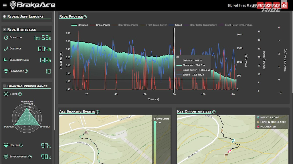 On reste chez les geeks pour finir ! Un trio de néo-zélandais pour être plus précis. Matt, Rolf et Phil sont à l’origine de BrakeAce, un système de télémétrie dédié au freinage. Il en existe quelques-uns au monde, dans les paddocks de Coupe du Monde et bureau d’étude, mais celui-là ambitionne de percer auprès du grand public. Le concept repose pour l’heure sur le capteur – qui s’intercale entre la patte et l’étrier – et l’application, qui doit traiter les données…