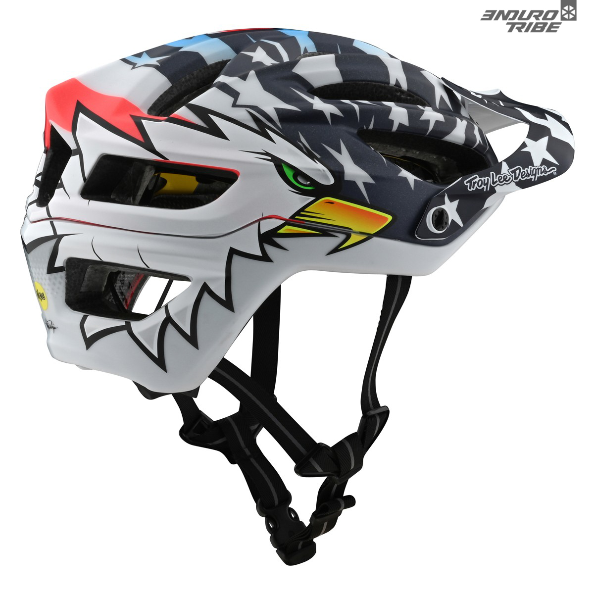 Le Srceaming Eagle, outre son côté make America great again, est une référence au casque peint par Troy Lee à la légende John Tomac au début des années 90. Un joli clin d’oeil pour rappeler que chez les Tomac, c’est une affaire de famille. Dans ces années là, le fiston Eli – qui vient de remporter le SX US 450 – n’était même pas encore né, ou tout juste, et c’est son père qui était une star…