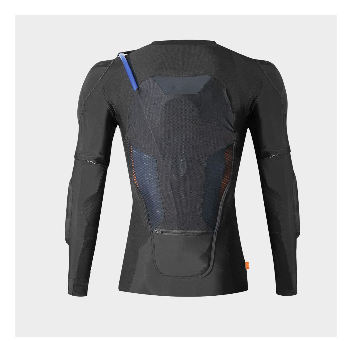 Dans le dos, aux épaules et aux coudes, des pads en D3O et sur le torse un pad en mousse EVA de 5mm assurent la protection. La dorsale est maintenant ajourée pour optimiser l’aération tout en conservant son niveau de protection. Le nombre de poches de rangement augmente et passe à 3 : une en bas du dos et 2 à l’avant. Ce gilet complet est aussi pensé pour accueillir une poche à eau dans le dos et les coudières sont amovibles, tout comme les inserts aux épaules.
