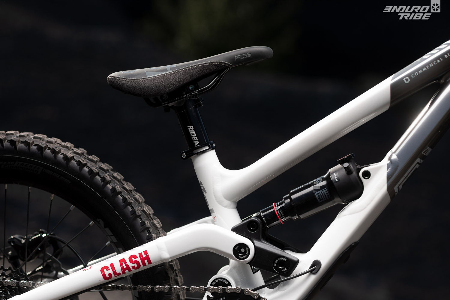 Bien différent du premier sujet, cette fois, c’est le fidèle destrier andorran à roues de 27,5″ prêt à tout faire qui évolue : le Commençal Clash. Remodelé en géométrie avec un reach allongé, un tube de selle plus court et plus redressé, un angle de direction plus fermé… Sa cinématique évolue aussi et abandonne le compromis pour laisser le choix entre 2 positions, à favoriser selon l’usage et les besoins. C’est aussi, après le Meta AM, le second modèle de la gamme à profiter du potentiel de la nouvelle Fox 38 :