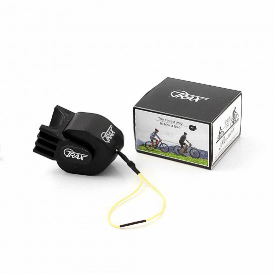 …pour les autres, ceux qui ne peuvent encore pas rouler par leur propre moyen, il existe une solution : le câble Trax. Découvert via le distributeur français Tribe Sport Group, c’est un système conçu autour d’un câble en Kevlar qui se fixe à la tige de selle du vélo qui tracte via des colliers crantés et à la potence, par une boucle, au vélo tracté.