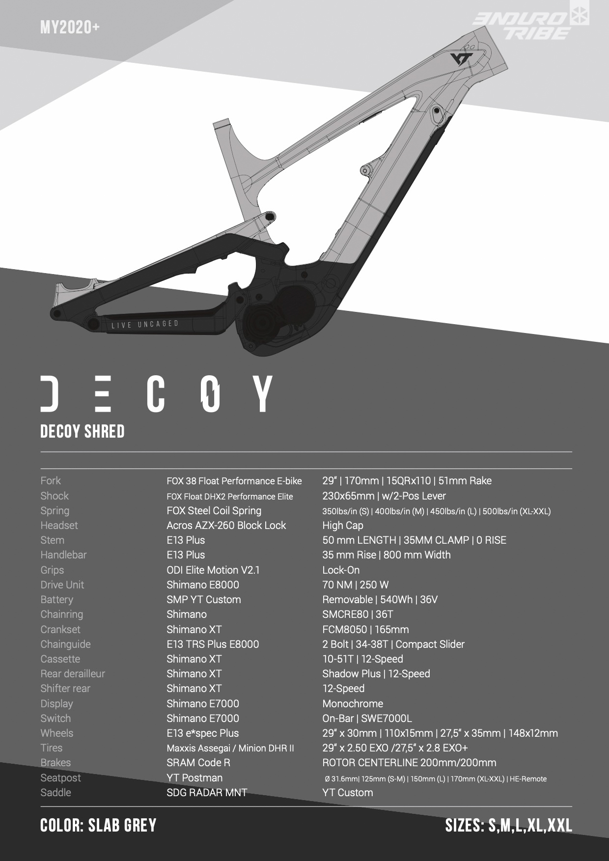 YT Capra Shred : 15,6kg – 3499€ / YT Capra Shred 29 : 16kg – 3499€ / YT Decoy Shred : 24,3kg – 5999€