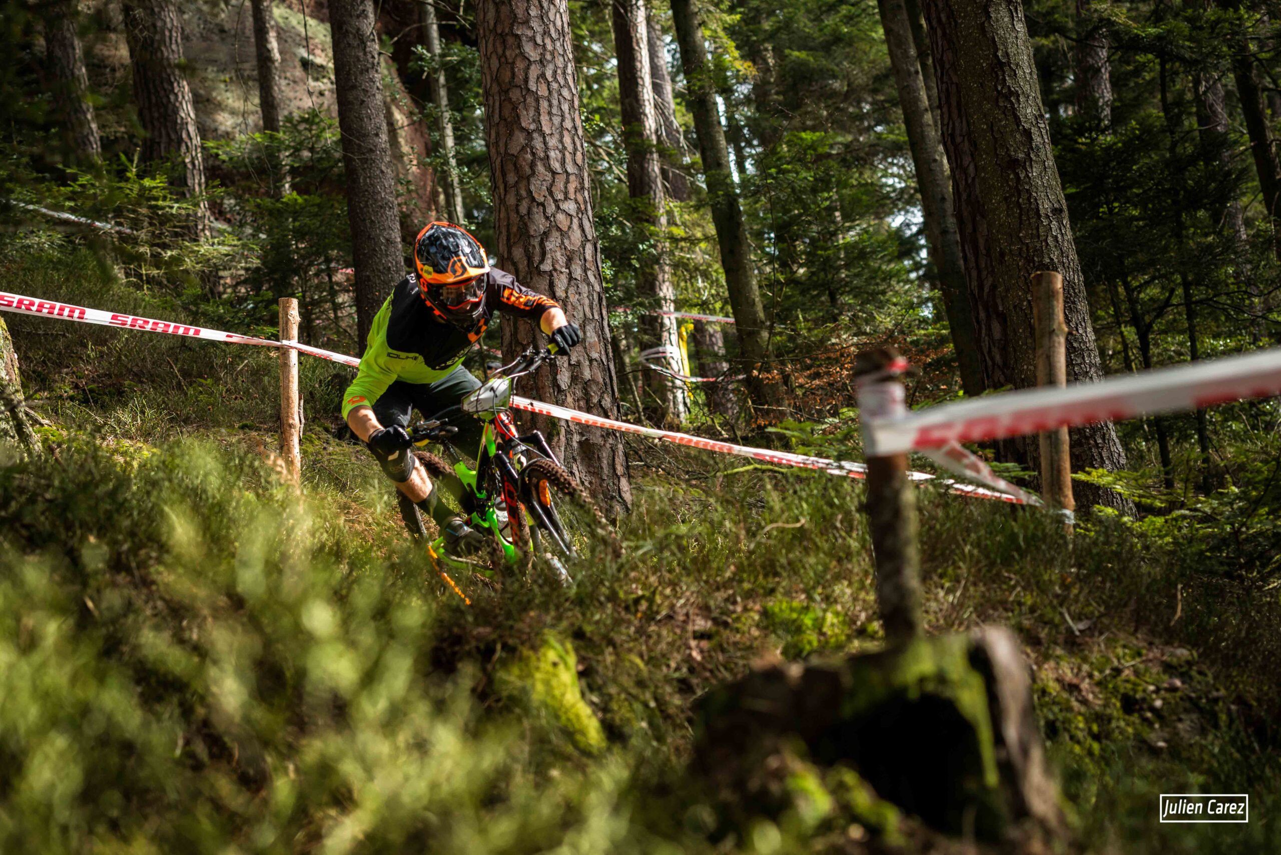 Au milieu de cette mousse verte omniprésente, d’un terrain sablonneux en grès des Vosges, le terrain offre un potentiel immense pour la création de pistes d’enduro et la colline de Raon l’Etape a encore une fois montré ses meilleurs atouts !