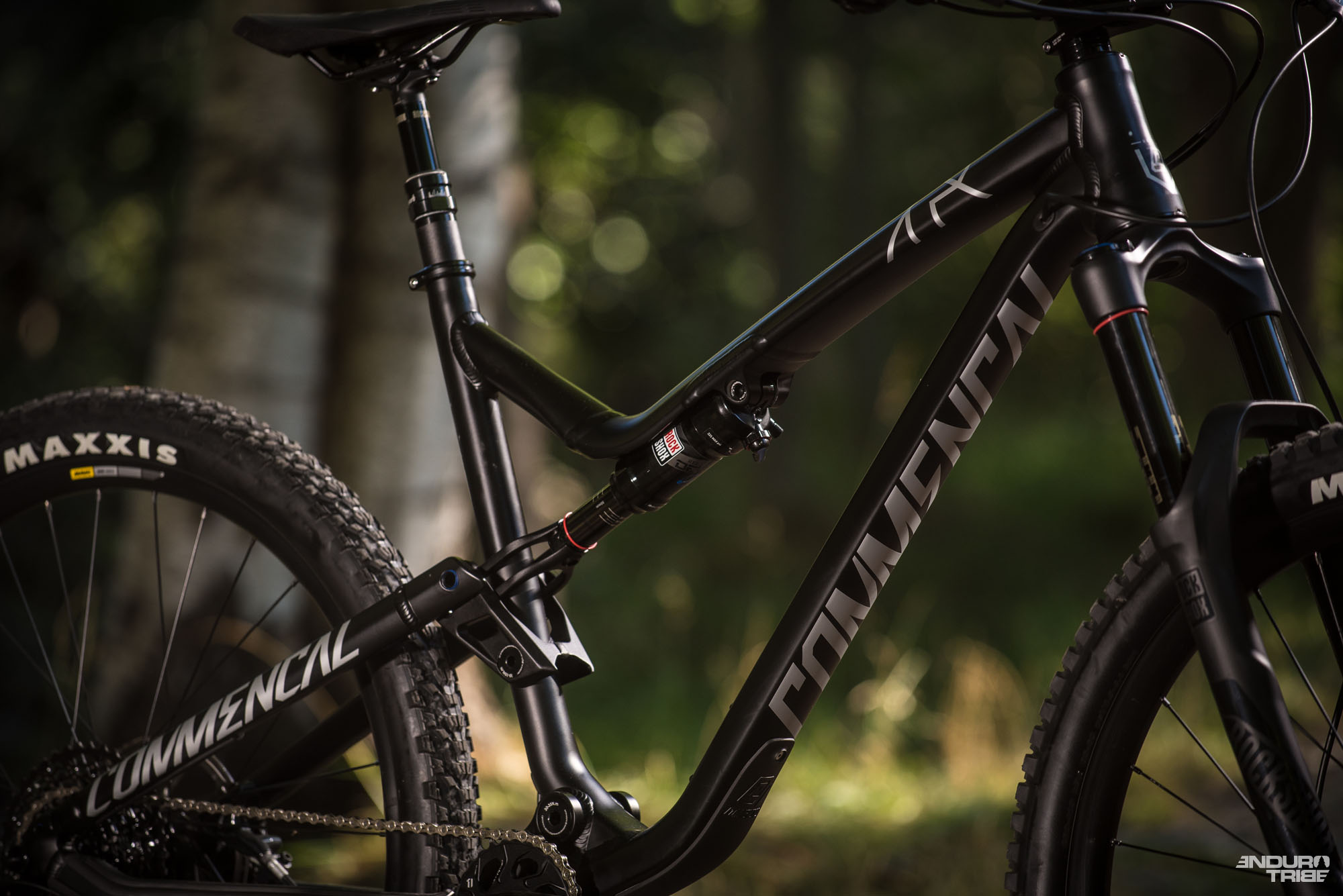 Le TR se pare d’une géométrie remise au goût du jour (plus agressive), des entraxes en boost (mais pas prévus pour du 27,5+), davantage de débattement (fini le 120/120mm, place désormais à 130mm arrière pour 140 en proue) avec un amortisseur de type metric (210×50) couplé à un tube horizontal en deux parties.