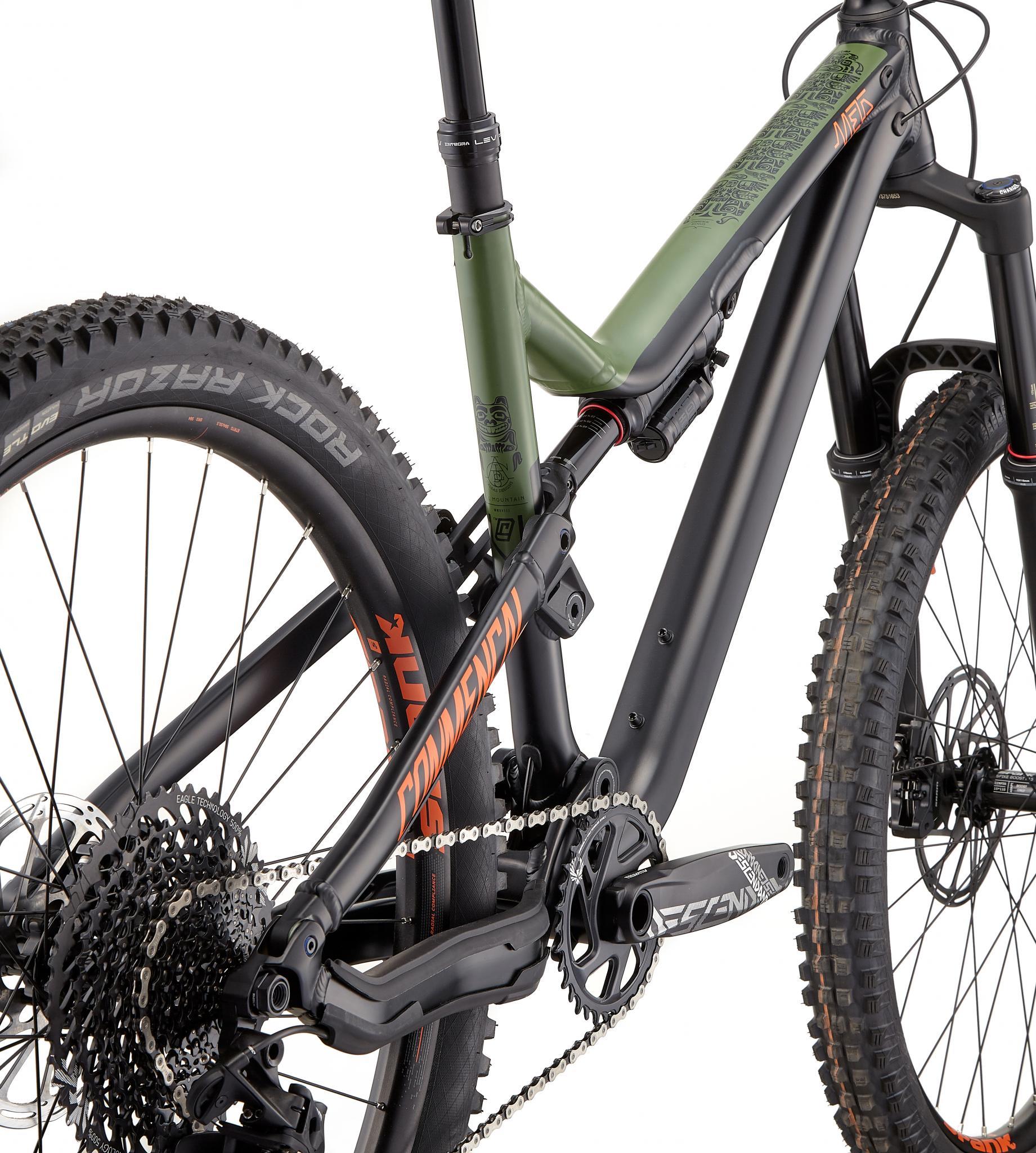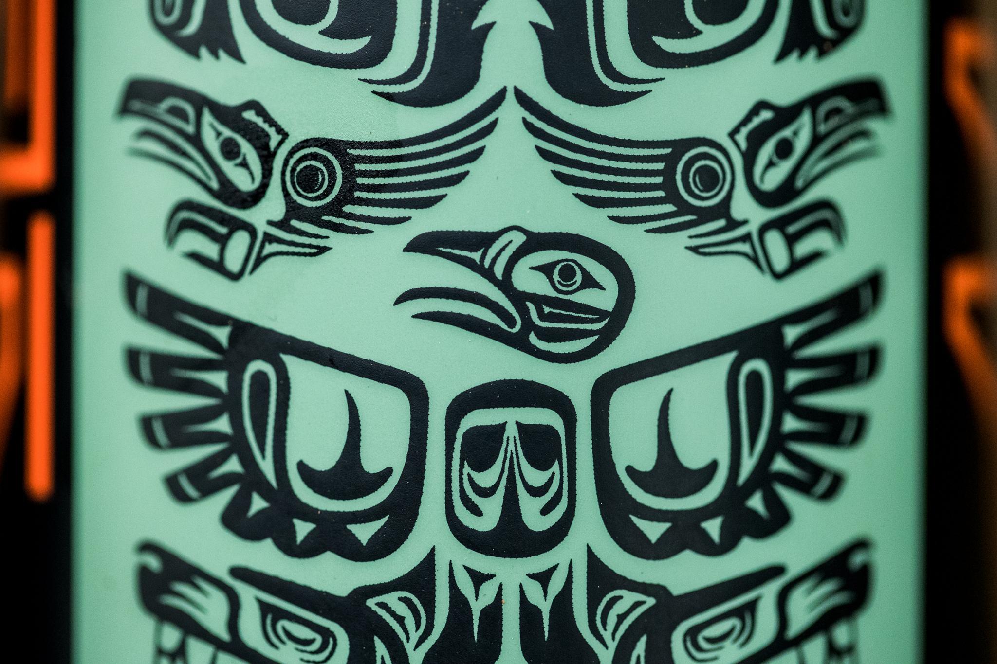 Le Meta AM V4.2 BC Edition se pare d’une déco matte, sobre et classe, mêlant une peinture bi-ton noir/kaki surmontée d’orange et de motifs de l’art Haïda.