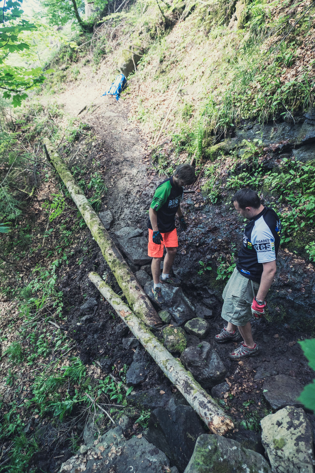Nous avons travaillé une partie effondrée et ravinée sous les conseils techniques de Hans, un professionnel du partenaire Ho5 park.