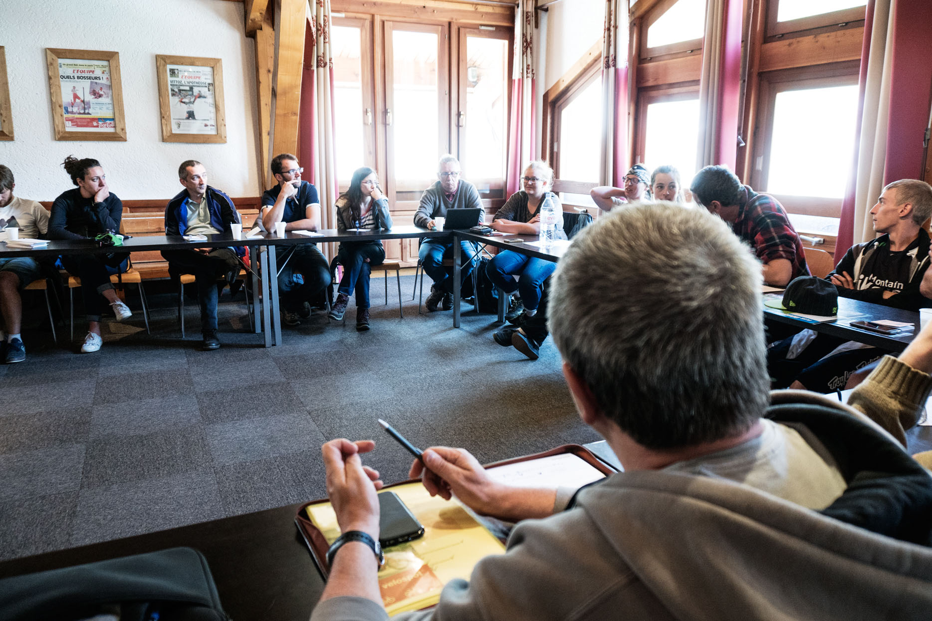On se retrouvait tous le matin vers 9h dans le village, certains viennent de loin, c’est vraiment agréable de voir les implications de chacun. Débutait ensuite une formation théorique en salle : le développement maîtrisé des sports de nature, l’aspect réglementaire des sentiers (PDIPR, PDESI, code forestier, etc…), l’aspect foncier, l’aspect environnemental, ou encore comment engager une démarche localement…
