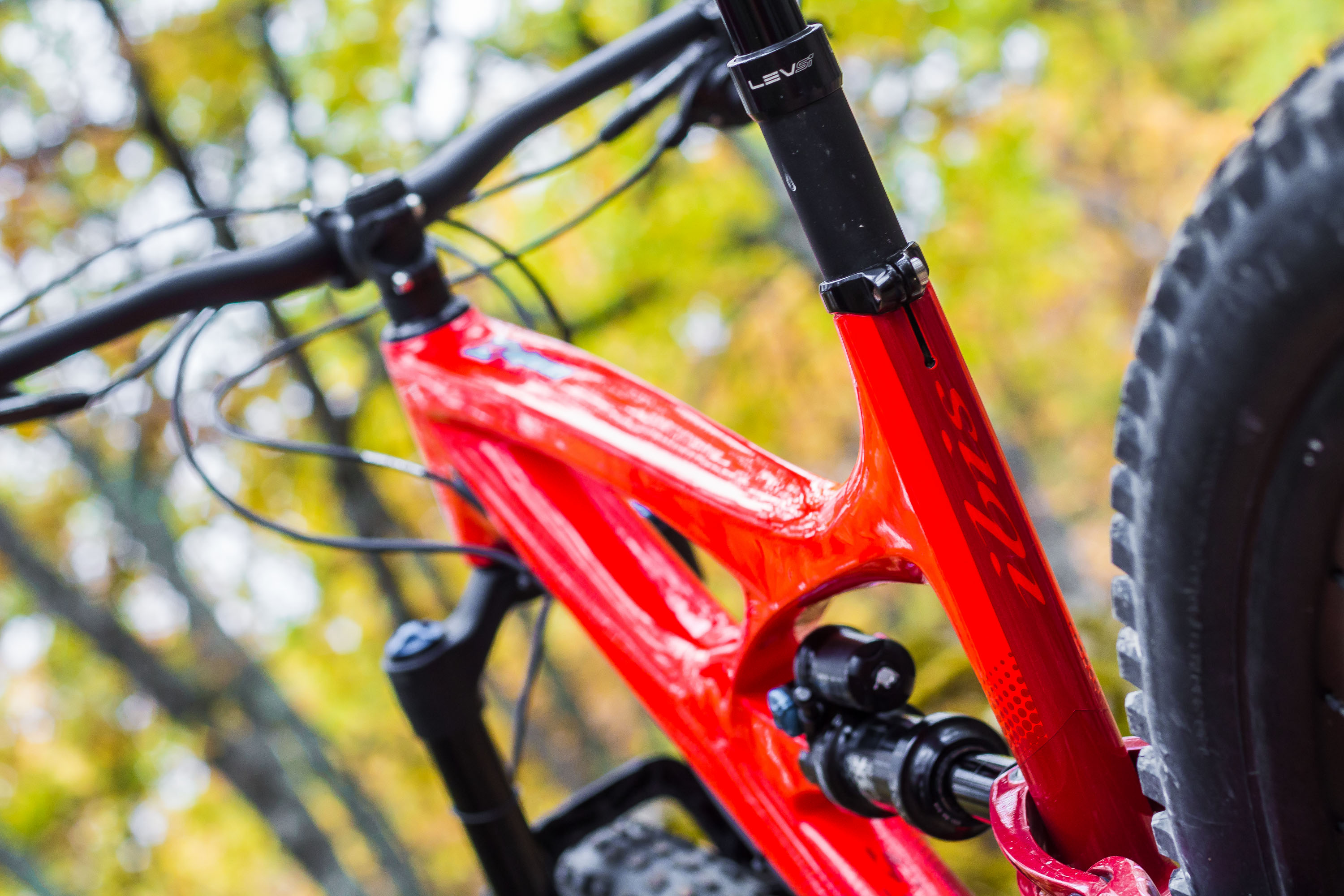 Avouons qu’au premier coup d’oeil, le bougre n’est pas du genre à laisser indifférent ! Il intrigue en tout cas suffisamment pour s’y pencher : design incomparable, cinématique DW-link, roues 27,5 pouces à jantes larges et pneus en 2.6 de section sont dans les tuyaux Endurotribe !