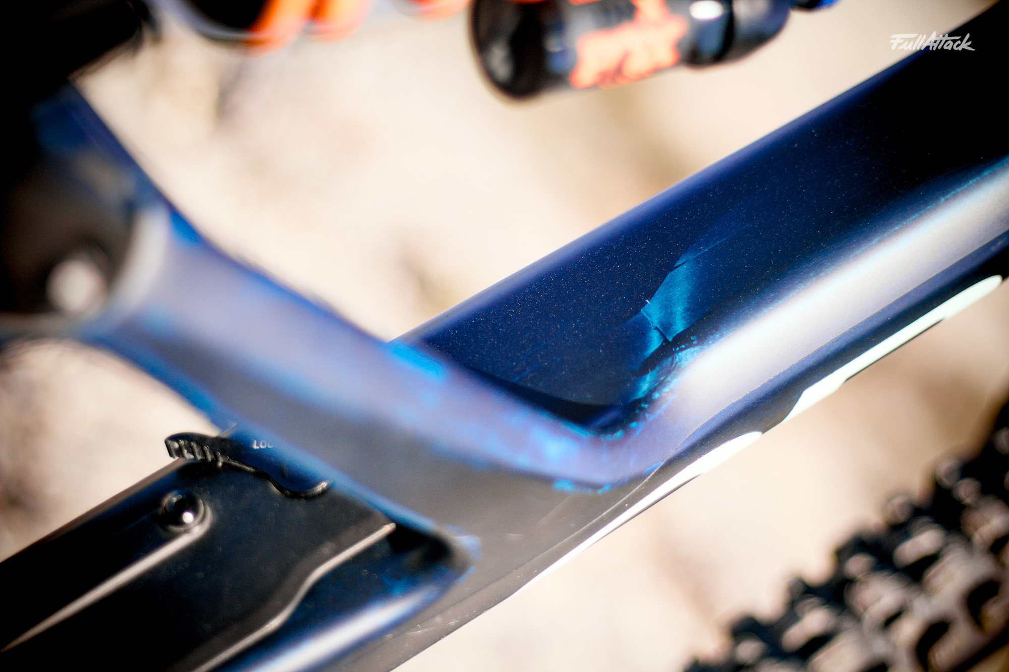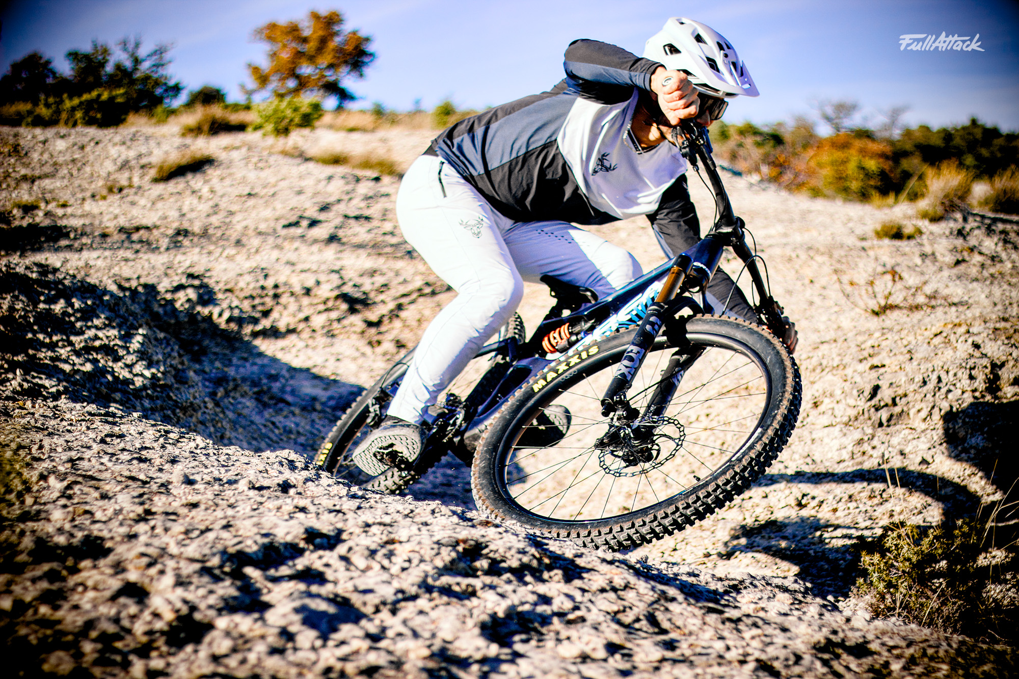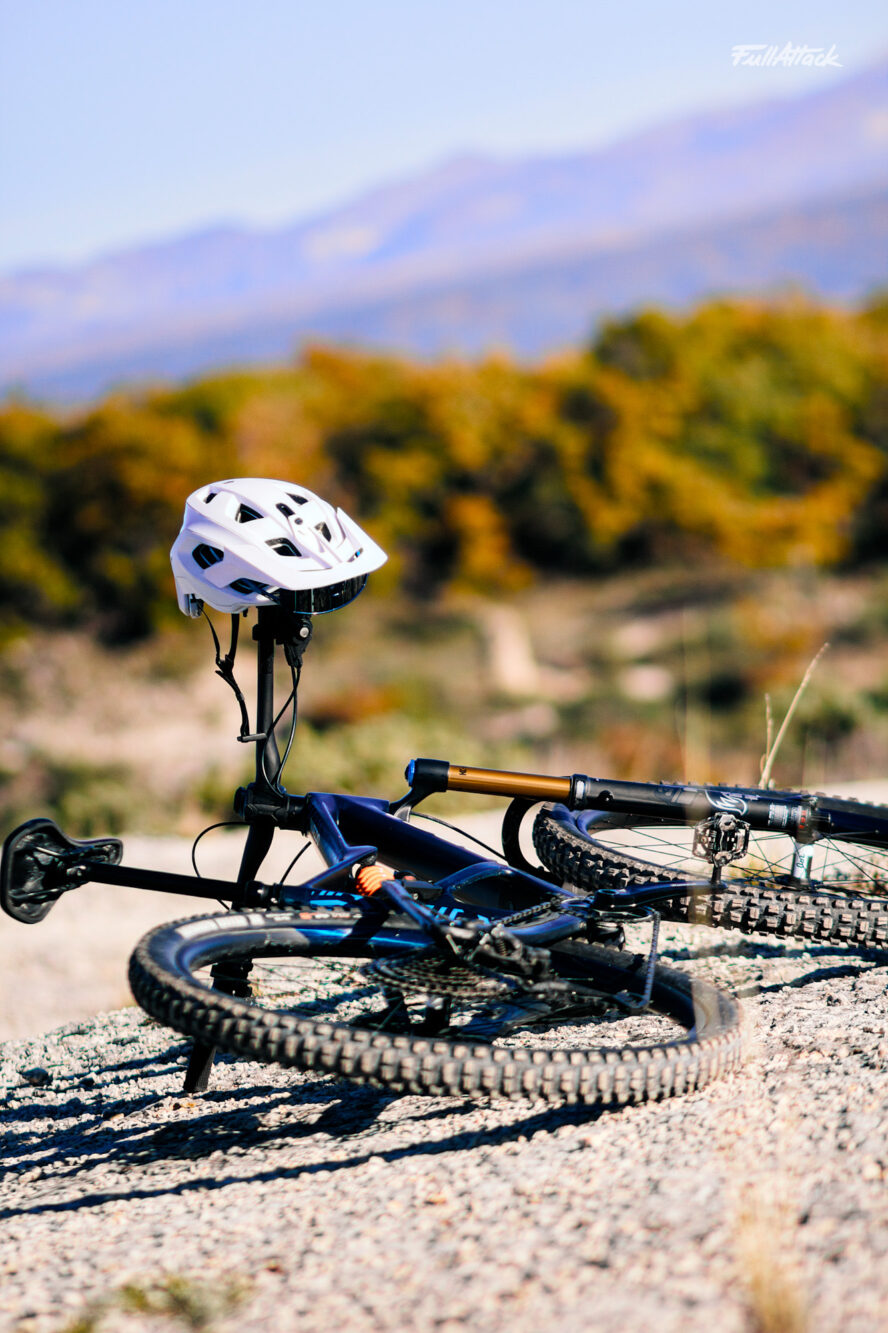 Hormis ce détail, l’adhérence de l’avant inspire confiance. À moins d’évoluer sur un sol vraiment précaire, la roue avant reste bien ancrée, docile et prévisible. Si tel n’est pas le cas, c’est le SAG ou la pression du pneu avant qui est à revoir. Mis à part ça, on sent que c’est un vélo qui fait travailler sa fourche. Elle permet de charger franchement sans arrière-pensée.