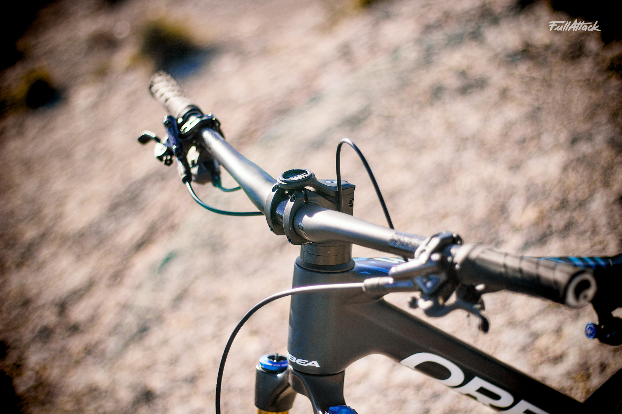 Côté montage, le ton est donné : FullAttack oblige, on lorgne naturellement vers les capacités gravity du châssis, donc vers la version LT. Fourche en châssis 36 mm, amortisseur à ressort (l’air est en réserve à l’atelier pour croiser les sensations), et composants maison pour jauger la maîtrise du carbone Orbea : cadre, roues et cintre signés de la marque. Les carcasses DH étant au catalogue MyO, banco ! Freins à 4 pistons, transmission Shimano XT mécanique – best seller qui méritait de faire un retour à l’essai – et le voilà, notre Occam LT FullAttack x MyO, prêt à passer au révélateur du terrain.