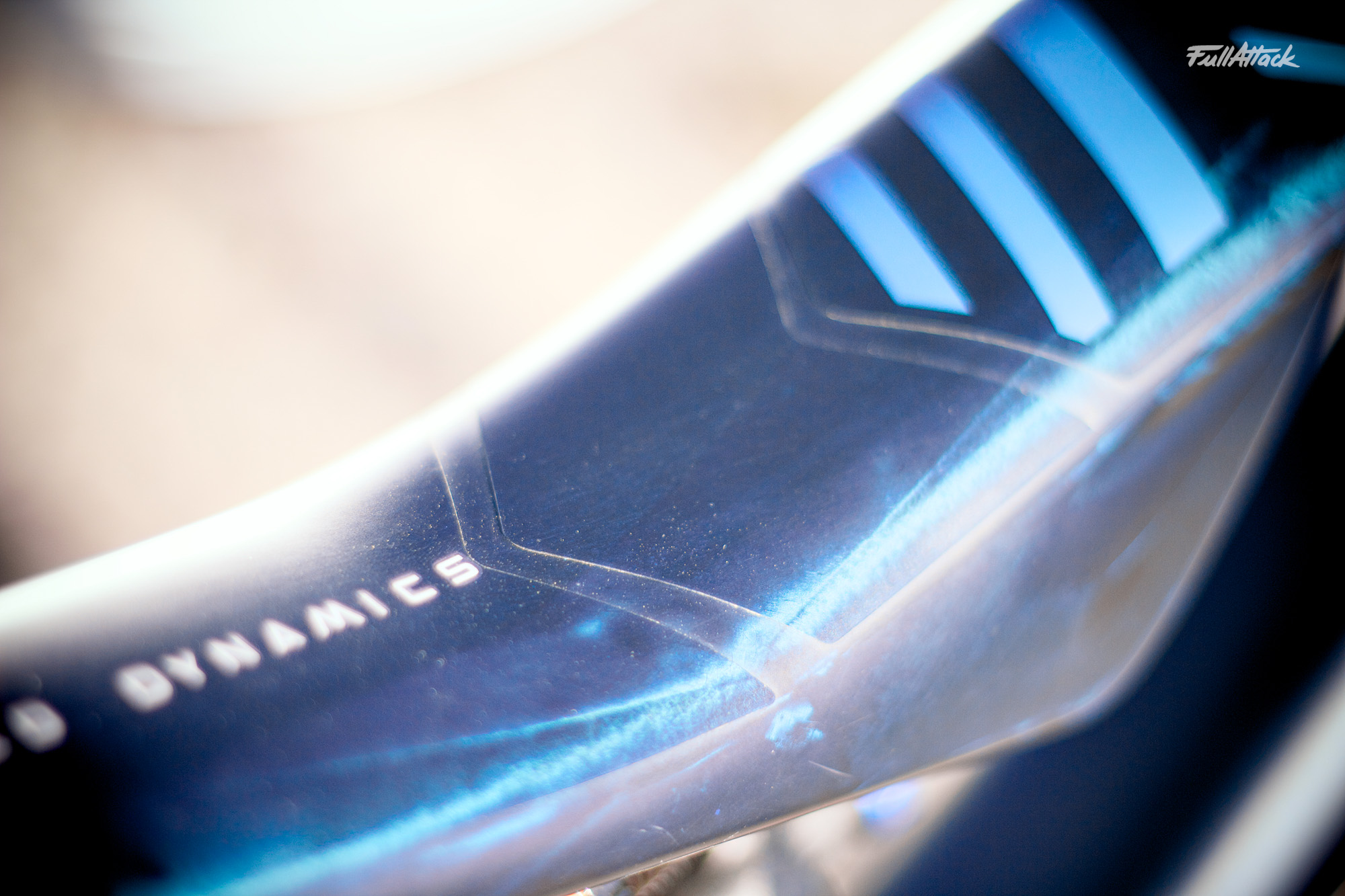 D’où quelques choix qui méritent explication. La couleur, d’abord : elle découle directement de la garde-robe du moment – maillots Animoz, lunettes Oakley, casque Fox. Si ça peut en aider certains à trouver l’inspiration et/ou le goût de bien faire les choses..! Côté finition, l’idée était d’évaluer ce que donne le vernis coloré plutôt qu’une peinture opaque, ici en version matte. De loin, le vélo reste discret ; de près et à la lumière, il révèle des reflets et les lignes de la fibre de carbone, presque hypnotiques, qui accrochent l’œil à chaque rayon de soleil. Ajoute à cela les jantes Oquo assorties, dont la teinte reprend exactement celle du cadre – le vernis matte n’était pas dispo – et le tableau prend des airs de configuration bien léchée.