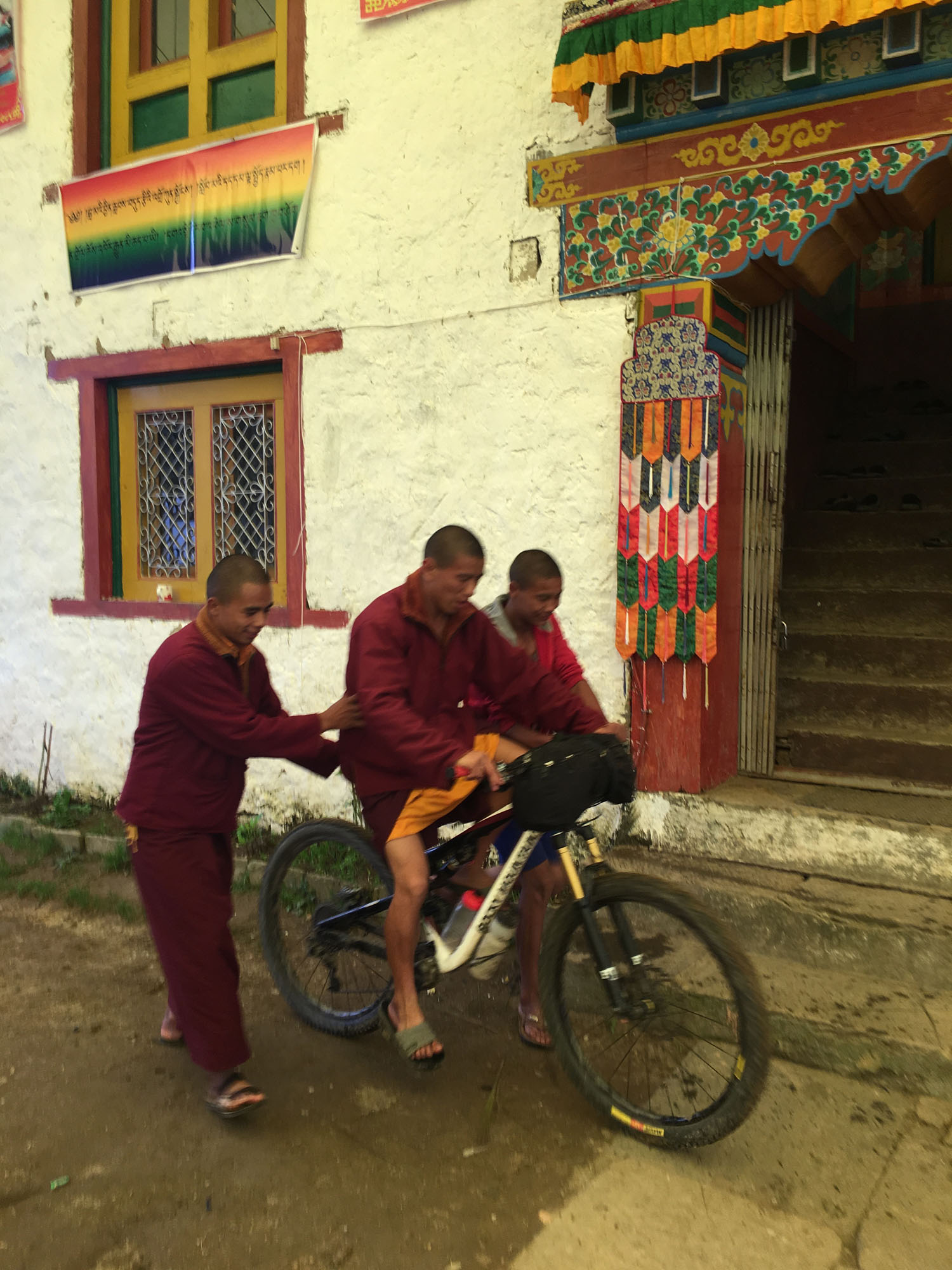 Il y a 5000 mules qui circulent dans ces vallées pour l’approvisionnement du trek de l’Everest, un vrai business qui fait vivre énormément de monde, mais ce passage ainsi que la mousson important détruisent le sentier qui devient impraticable dans beaucoup de portions. Créant des trous de boue et détruisant les escaliers, certaines parties restent roulables et me rendaient bien heureux.