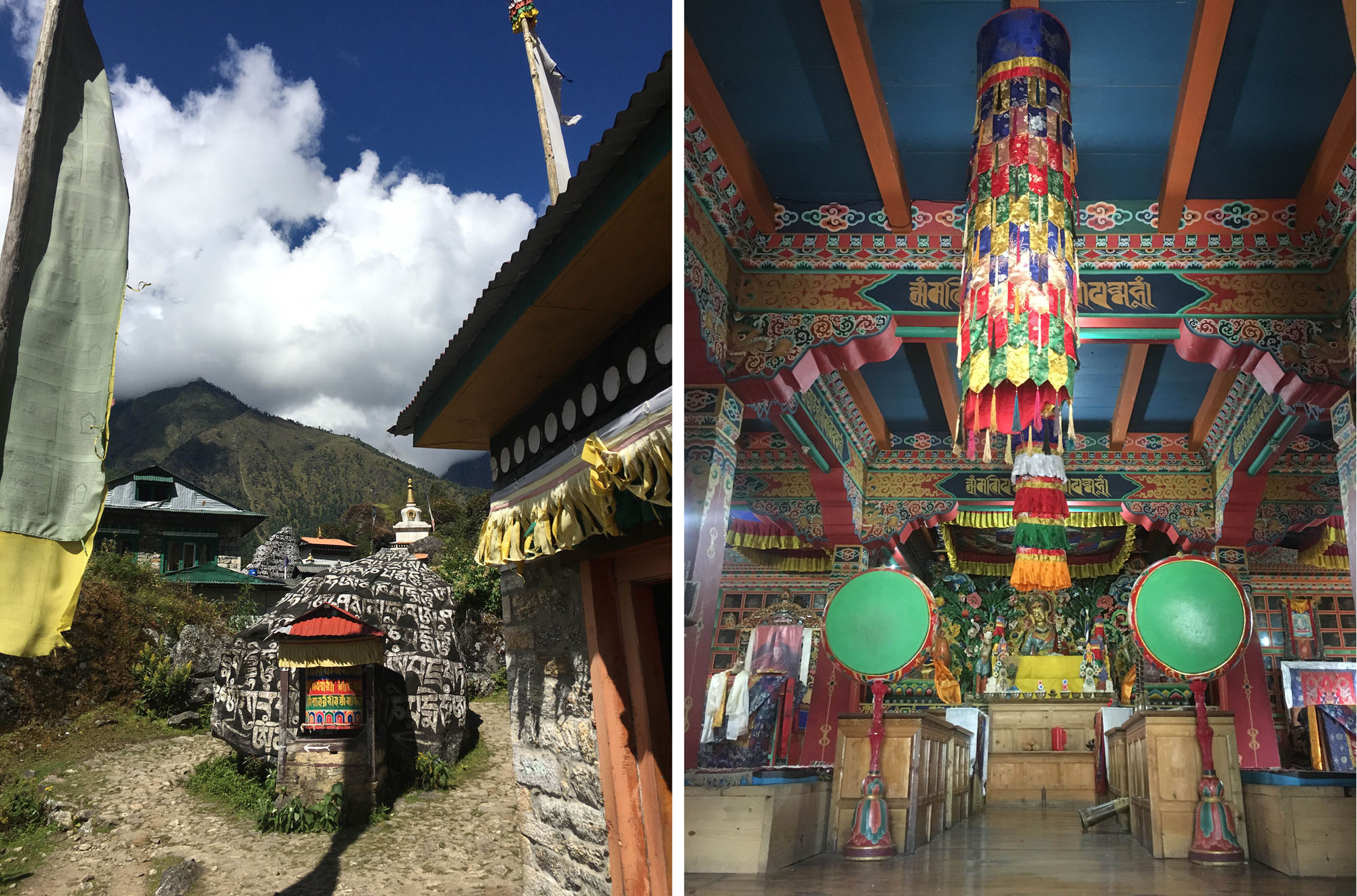 En redescendant la vallée, je décide de faire une variante et de passer par le trek du Tamang Heritage Trek, une bonne idée puisque après la première montée, le sentier est devenu génial à rouler. Traversant les villages Tamang, une communauté de réfugiés Tibétains. En effet, le Tibet n’est qu’à quelques kilomètres. La zone offre un patrimoine tibétain intéressant, mais aussi des points de vue superbes sur la vallée. En rejoignant le bourg au fond de la vallée je tombe sur quatre espagnols que je connais de Kyanjin, soirée improbable et très drôle avec un repas espagnol typique cuisiné par leurs soins !