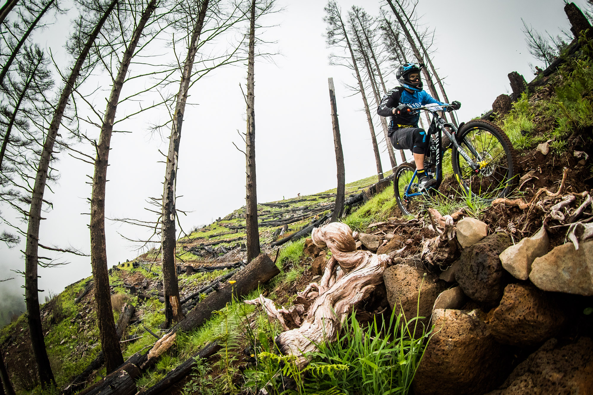 La spéciale 7 était typée très DH. À l’entrée du premier rock garden, j’étais déterminé à ne pas toucher les freins et à l’aborder à pleine vitesse. J’allais beaucoup plus vite que lors des entraînements de reconnaissance. Le problème c’est que je n’avais pas le bon tempo et très vite je me retrouvais complètement hors trajectoire, filant droit dans un photographe posté sur le bord du parcours. Je me souviendrais longtemps de ses yeux alors qu’il me regardait, pétrifié, lui foncer dessus à toute allure ! Cela aurait été vraiment dramatique de blesser quelqu’un venu simplement assister à la course, heureusement, plus de peur que de mal, aussi bien pour lui que pour moi et je parvenais à reprendre la course sans perdre trop de temps.