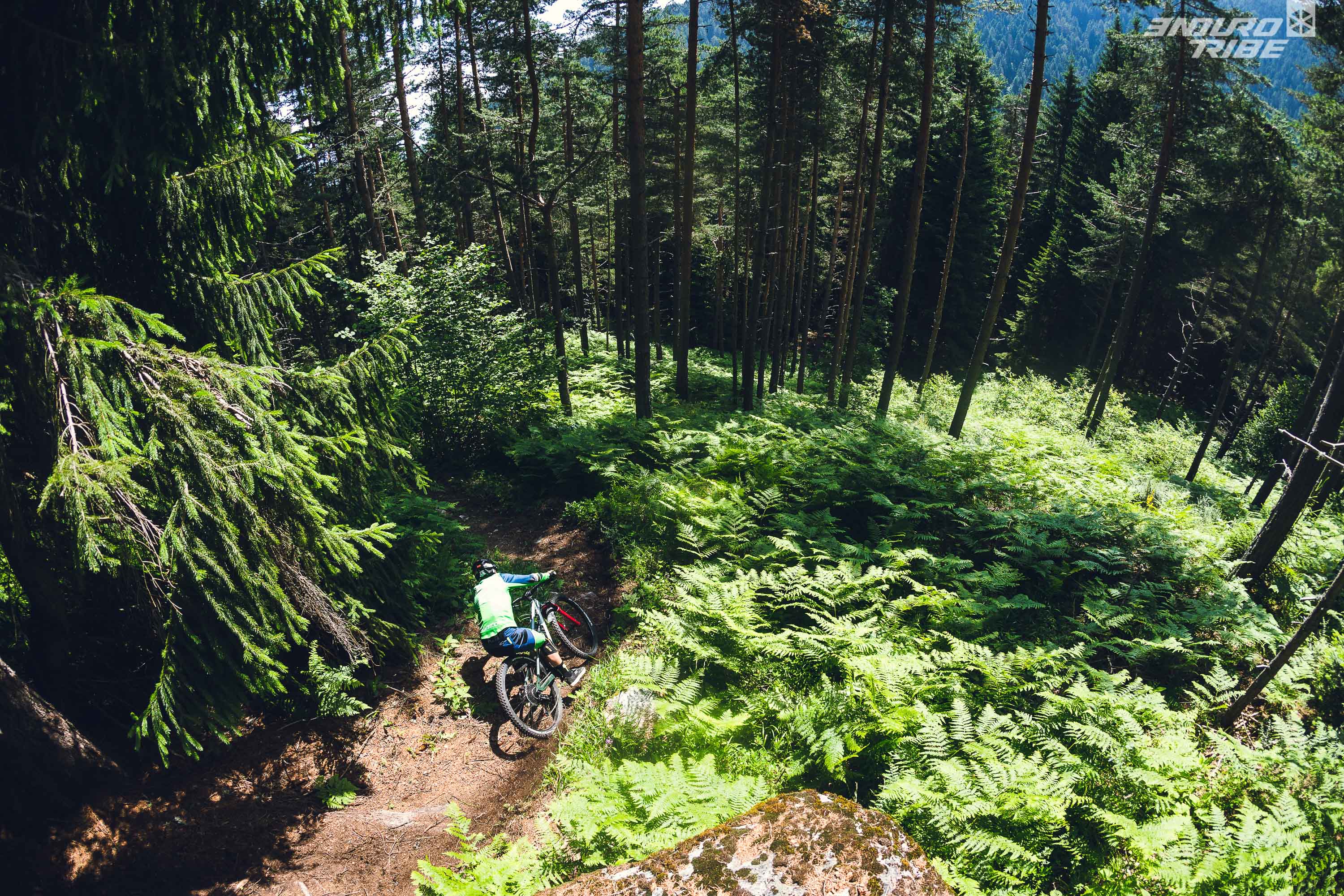 Le 2ème jour, nous arpentons les pistes crées pour le VTT. Certaines ont récemment servis au Championnat National d’Enduro et d’autres sont toutes fraîches. La pente dans cette partie est parfaite, pas besoin de pédaler ni de freiner, on a juste à jouer avec le terrain entre rocher, racines, éviter les arbres et suivre le couloir dessiné par les fougères.