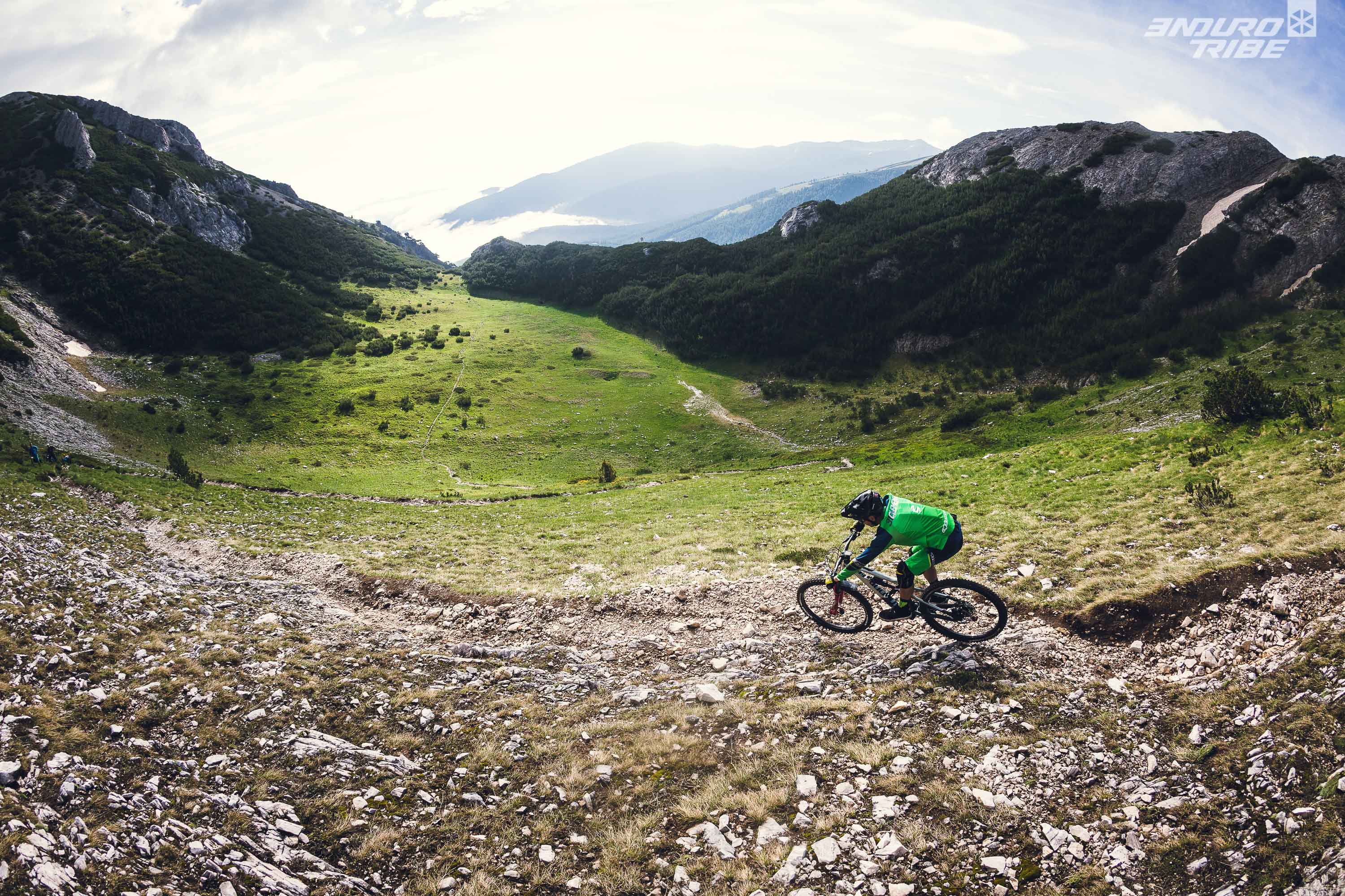 C’est un ride cool et panoramique au milieu de nulle part. Après la partie dégagée, nous rentrons dans une hêtraie qui regorge de secteurs vraiment joueurs, les freins chauffent et la descente est interminable. Les sentiers s’enchaînent jusqu’à Petric qui est situé à 165m d’altitude. Cette descente de plus de 1600m de dénivelé, restera sans doute comme un des moments fort de ce trip pour sa variété, ses vues et sa longueur XXL.