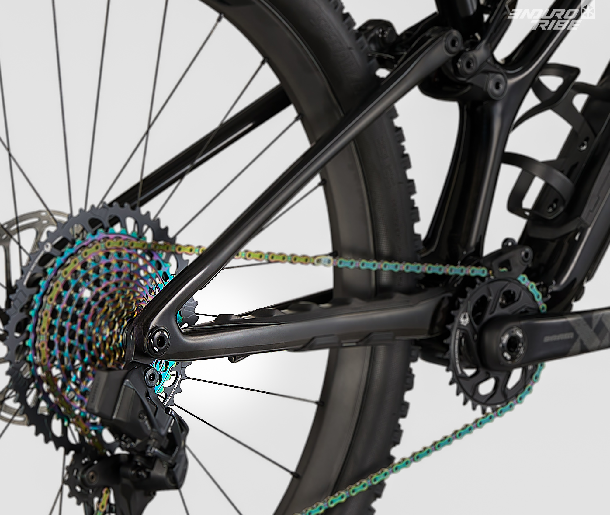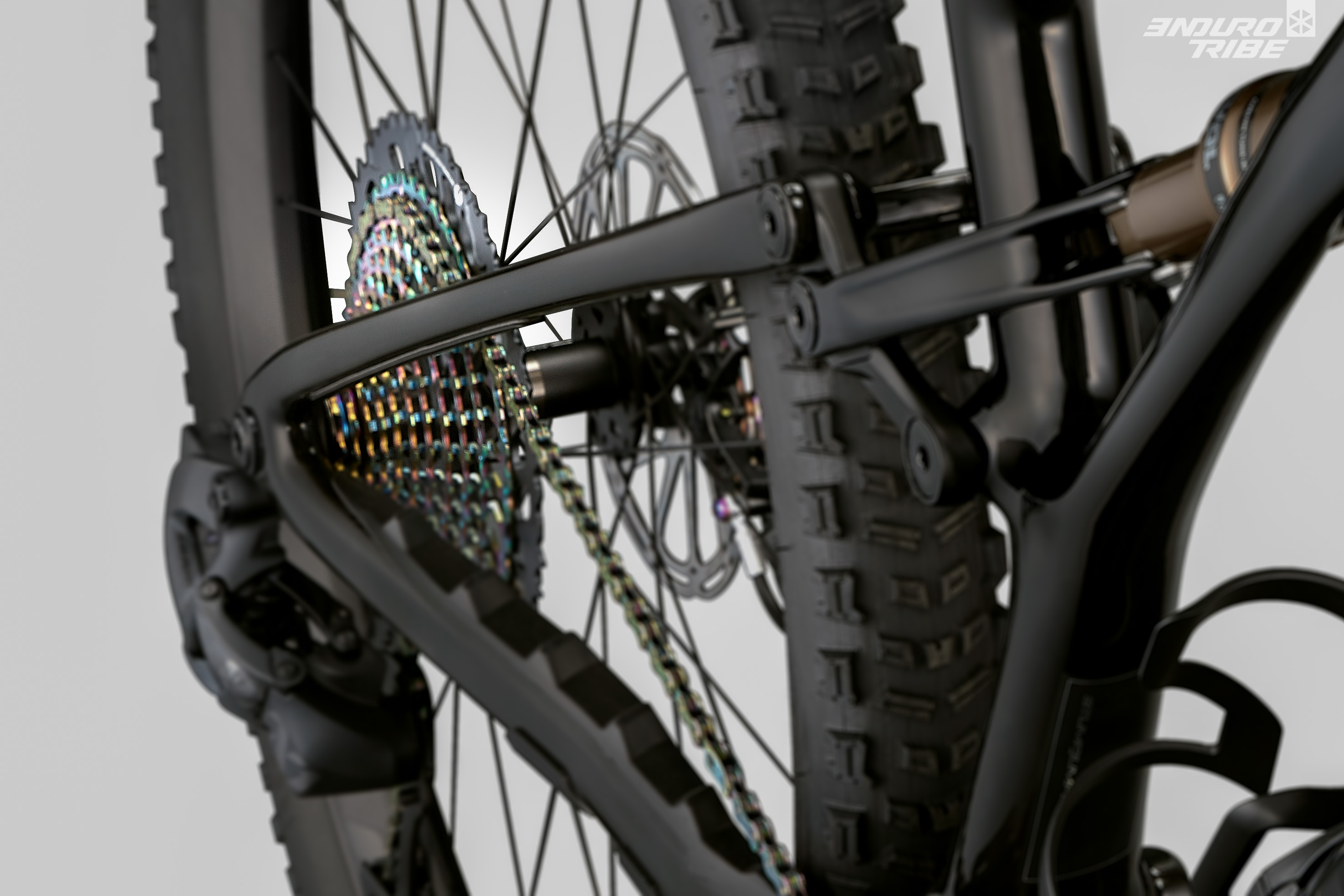 Justement… perte de 10 mm de hauteur de boitier, haubans affinés, inclinaison de la biellette très différente… n’y a-t-il pas de quoi s’interroger sur la suspension !? Il suffit de jeter un oeil aux bases du triangle arrière pour comprendre : le point de pivot du Horst Link a disparu !