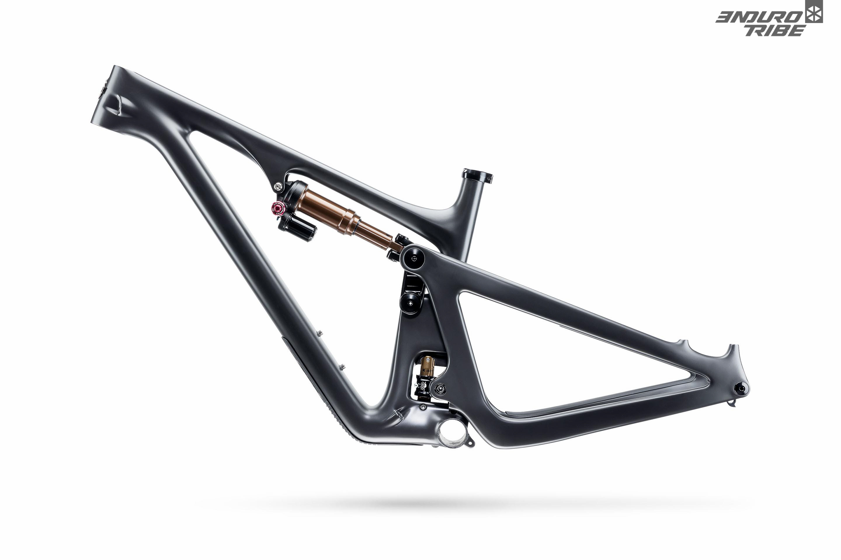 Si l’on ne dispose pas encore des informations d’entraxe et de course d’amortisseur de chaque modèle, on devine des valeurs plus faibles sur ce SB130. Elles engendreraient ici un débattement arrière de 130mm, pour 150mm à l’avant. +20mm comme c’est de coutume chez Yeti.