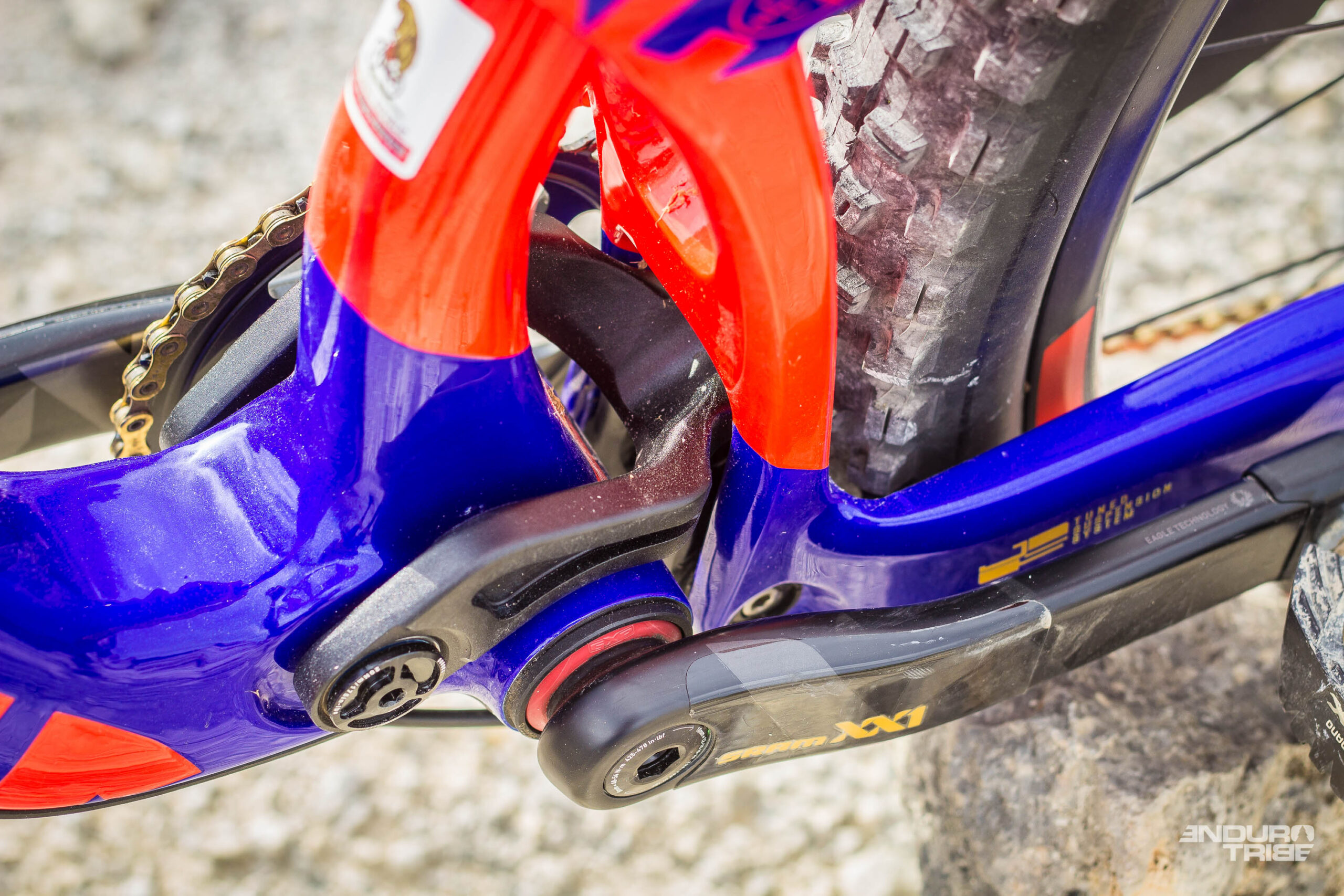 Un rapide coup d’oeil aux caractéristiques du vélo ne fait que confirmer l’information. Appellation du cadre, 155mm de débattement arrière, 160mm avant assurés par RockShox Lyrik et Yari, amortisseurs à bonbonne pour certains, jante en 30mm, cintres en 780mm…