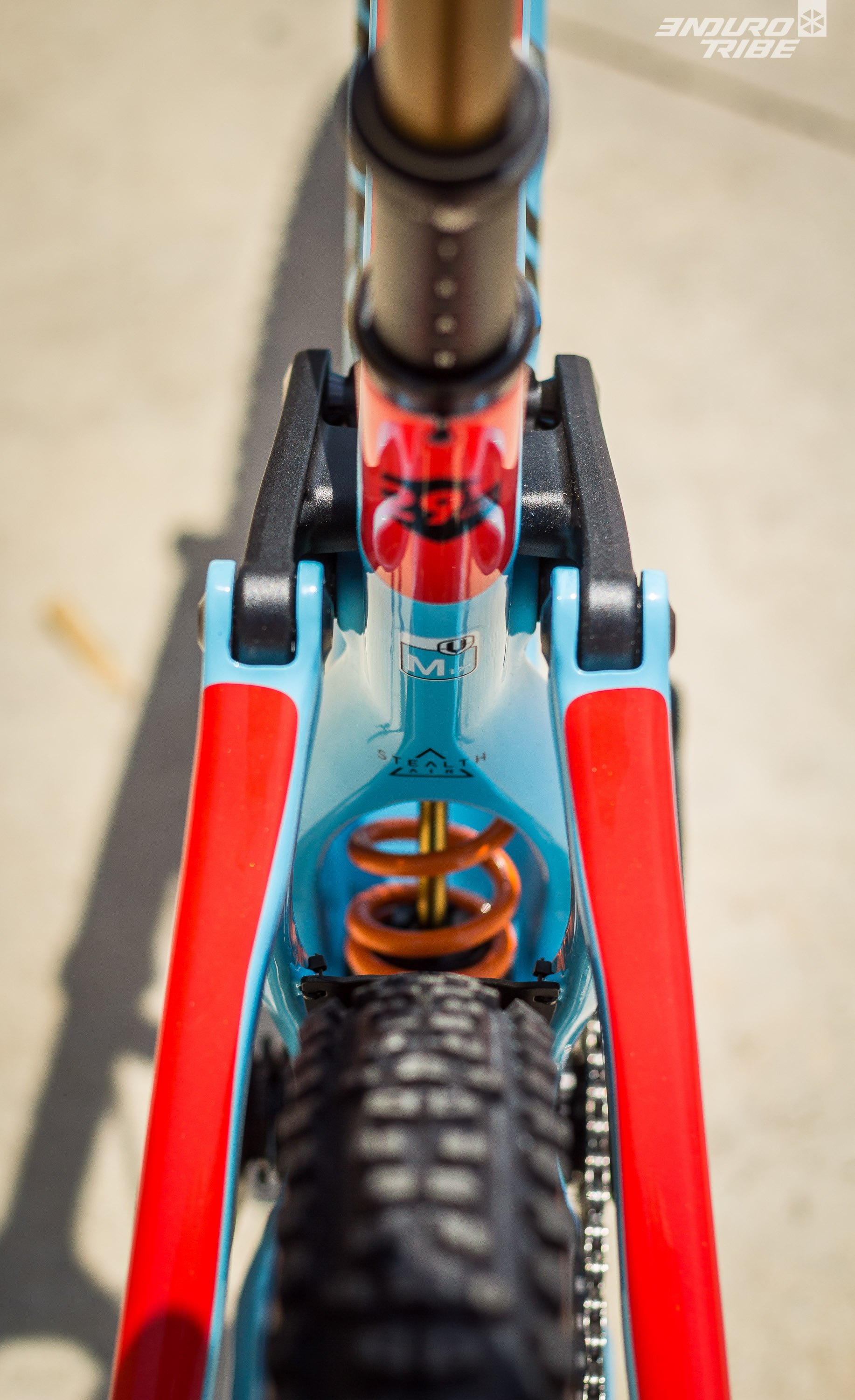 Ensuite pour s’assurer que l’impression de vitesse du Mondraker Foxy Carbon 29 sur terrain défoncé ne soit pas uniquement due aux capacités de franchissement supérieure du 29 pouces, mais bien, aussi, d’un bon travail de la suspension, comme c’est déjà le cas sur les modèles en 27,5 pouces. C’est pour ça qu’en interne, les amortisseurs ont un spacer plus important dans le Mondraker Foxy Carbon 29, et qu’ils font usage des settings light en compression, et ultra light en détente au niveau de l’hydraulique. Des réglages qui rappellent que l’an passé aussi, Orbea poussait dans ce sens pour le Rallon R5, et que seule Fox en avait les capacités, sur les X2 et DHX2 seulement…