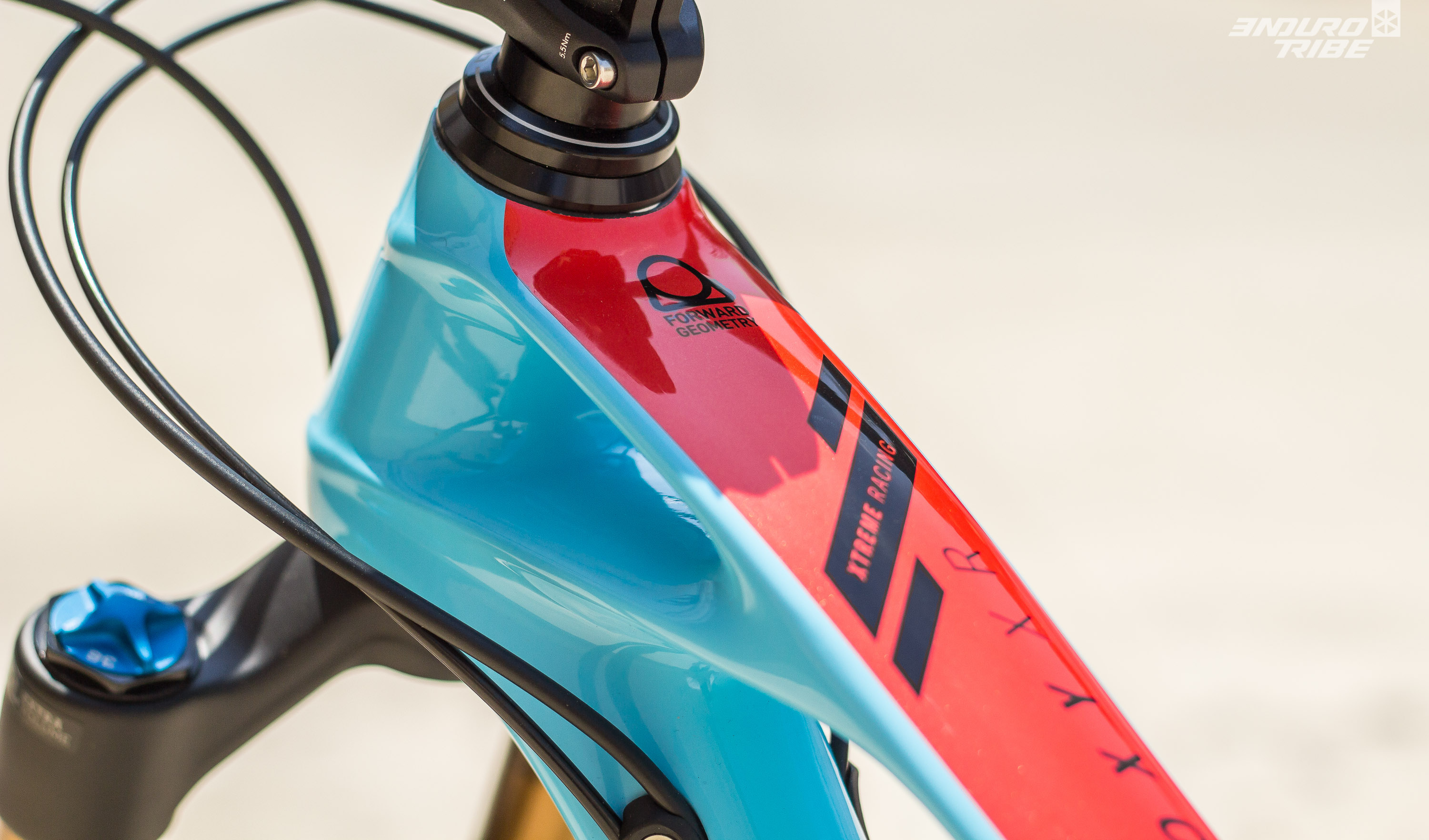 Communément, on prête à la Forward Geometry un reach très long et un angle de direction très couché. C’est vrai, mais ce ne sont que des conséquences d’un objectif bien déterminé : jouer sur la valeur de l’empattement avant – distance entre le boitier de pédalier et l’axe de roue avant. Plus cette dernière est importante, plus le vélo a des chances d’être stable.