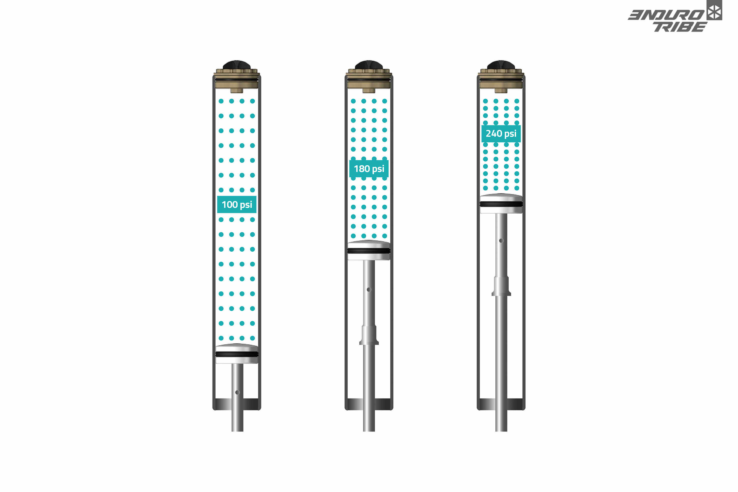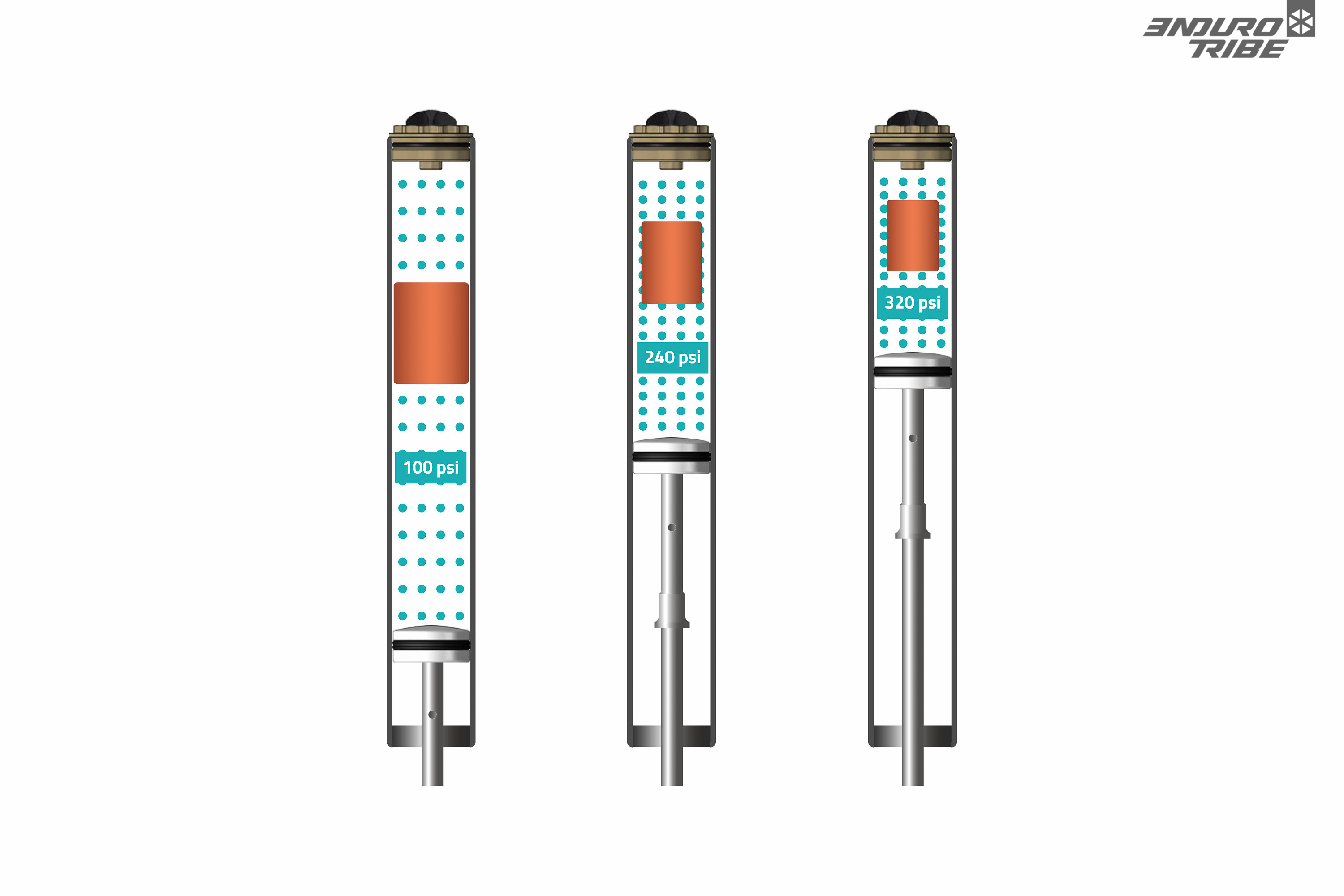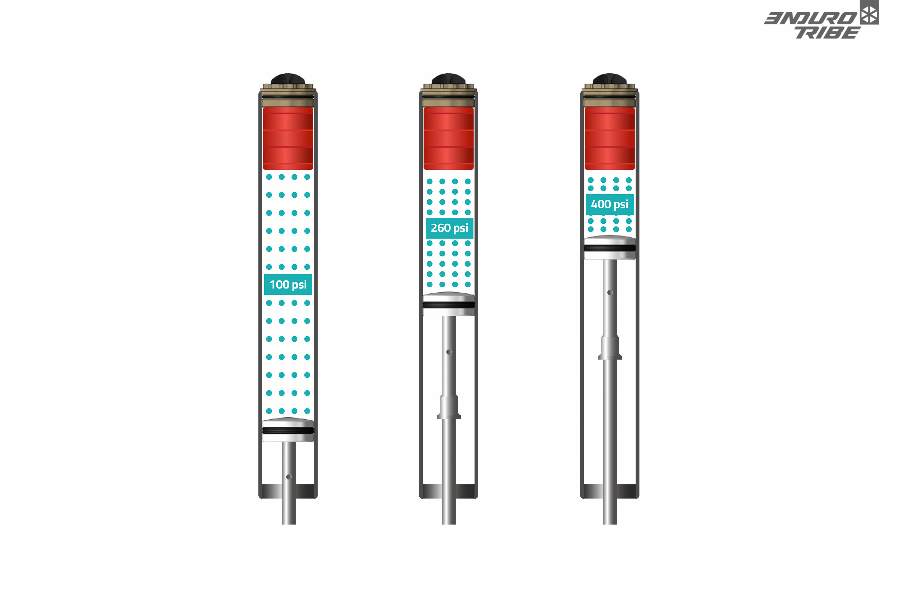 Au moment d’écrire ces lignes, le concept est devenu monnaie courante. Il y a quelques temps déjà, RockShox puis Fox, ont démocratisé l’usage de tokens : ces cales qui permettent d’ajuster le volume d’air des ressorts pneumatiques, et ainsi jouer sur la progressivité de l’ensemble. Pour tout saisir de la théorie, Endurotribe y consacre d’ailleurs un article didactique très détaillé.