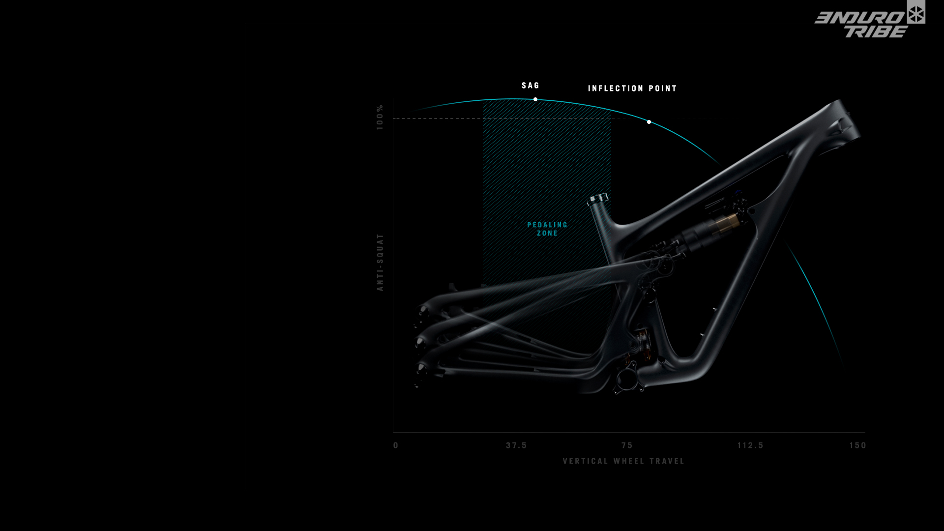 Mais comme la marque en a l’habitude, le débattement avant est plus important, de l’ordre de 20mm supplémentaires ! Une particularité à prendre en compte pour bien saisir le positionnement du Yeti SB150. L’expérience d’essai qui est la notre ne trompe pas. Prenons la valeur moyenne entre les débattements avant et arrière, pour chaque modèle.