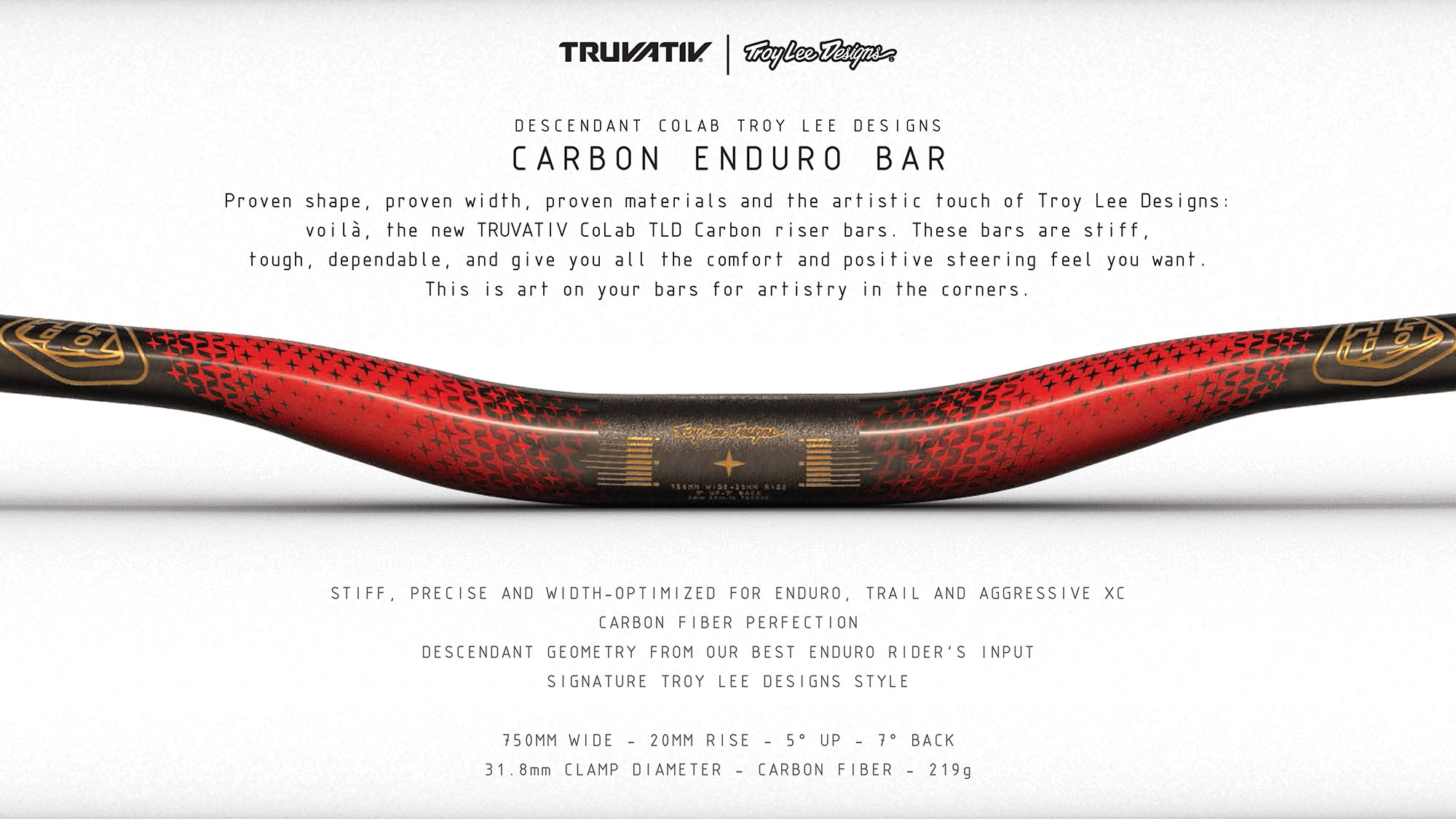 Derniers nés de la collaboration entre SRAM et Troy Lee Designs, trois nouveaux cintres (2 alus et 1 carbone) Truvativ Descendant CoLab voient le jour…