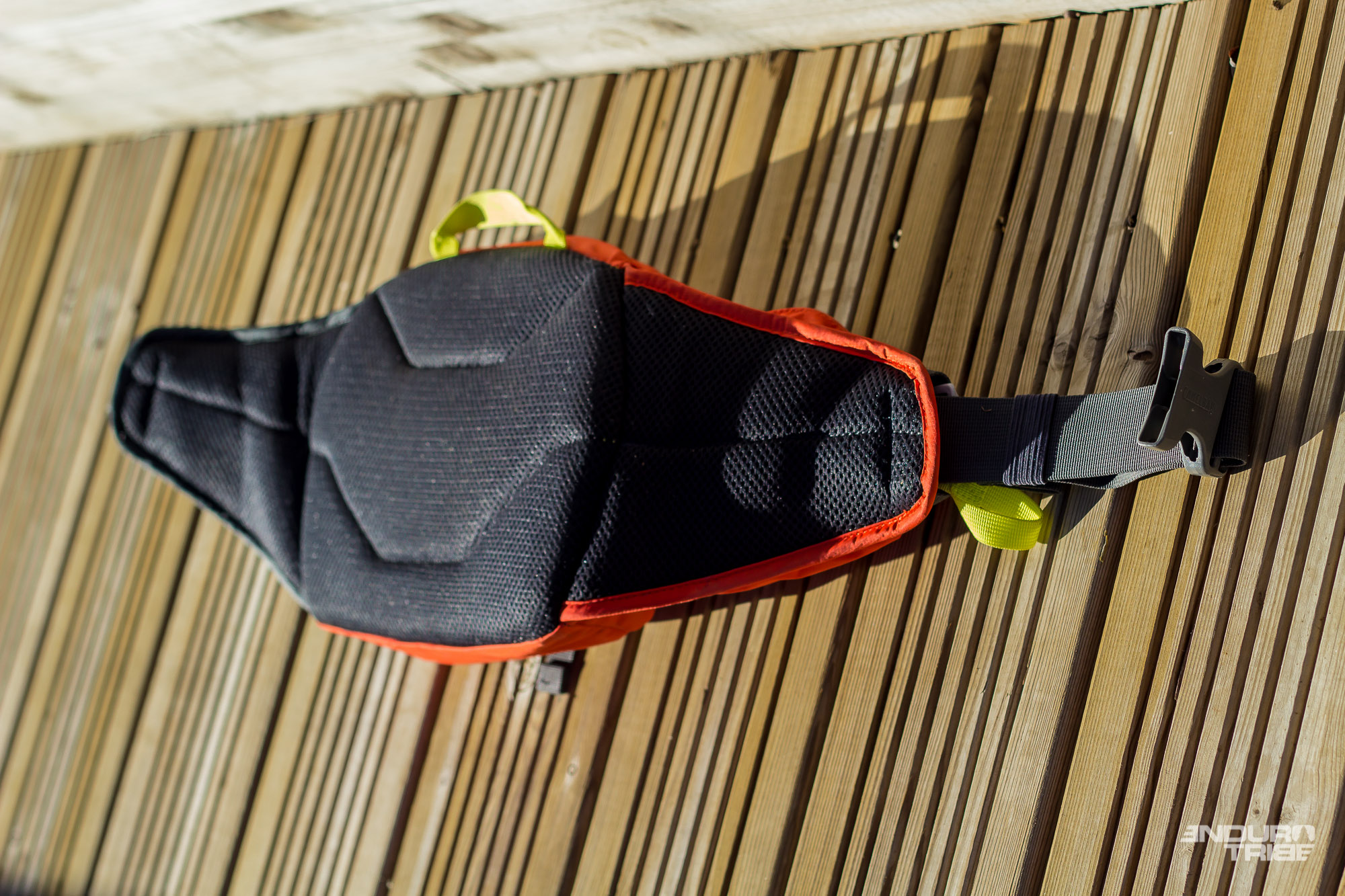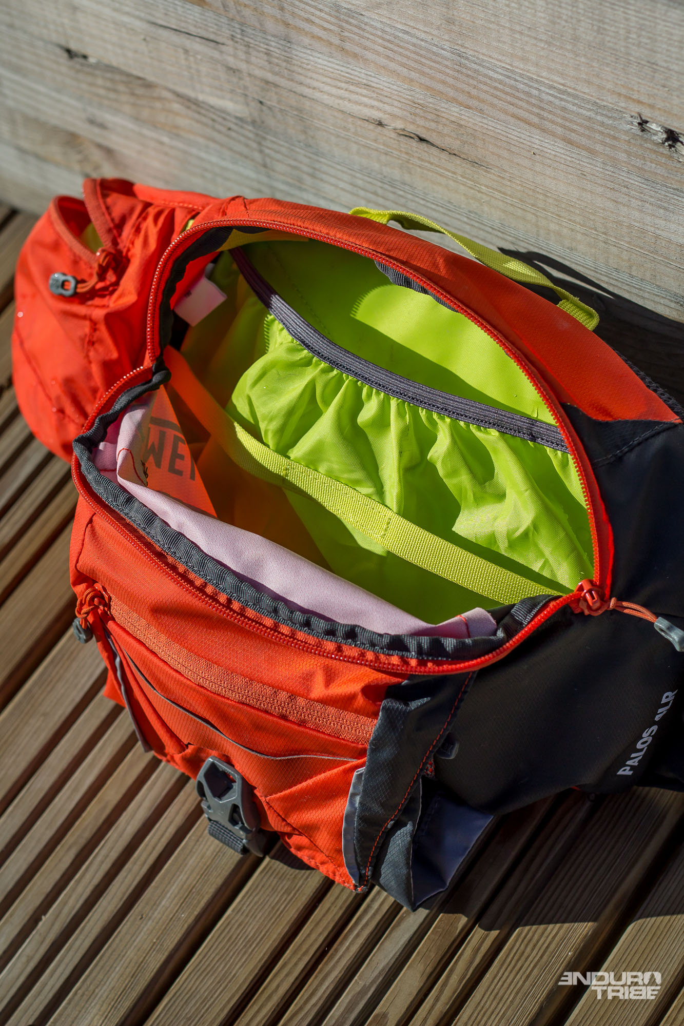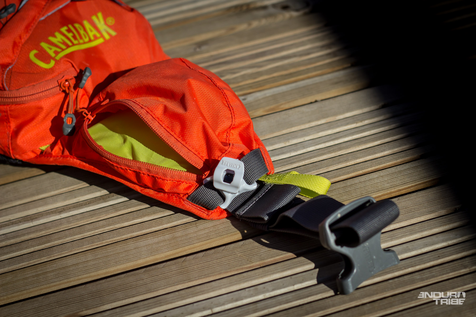 À première vue, il est possible d’embarquer une multitude d’éléments dans cette Camelbak Palors 4LR. Le volume, relativement réduit par rapport à un sac à dos classique, propose des compartiments de différentes tailles où chaque élément trouve sa place. Veste légère, pompe, chambre à air, et poche à eau dans le plus grand. Multi-outils, dérive-chaine, cartouche dans un des rabats. Couverture de survie et pansements dans l’autre. Barre de céréale et gel dans une poche latérale. Portefeuille et téléphone dans la dernière… À moins que sur les hanches – premières à prendre les pizzas en cas de chute – la forte exposition de ce dernier, précieux, ne pousse à l’enfouir dans la poche principale…