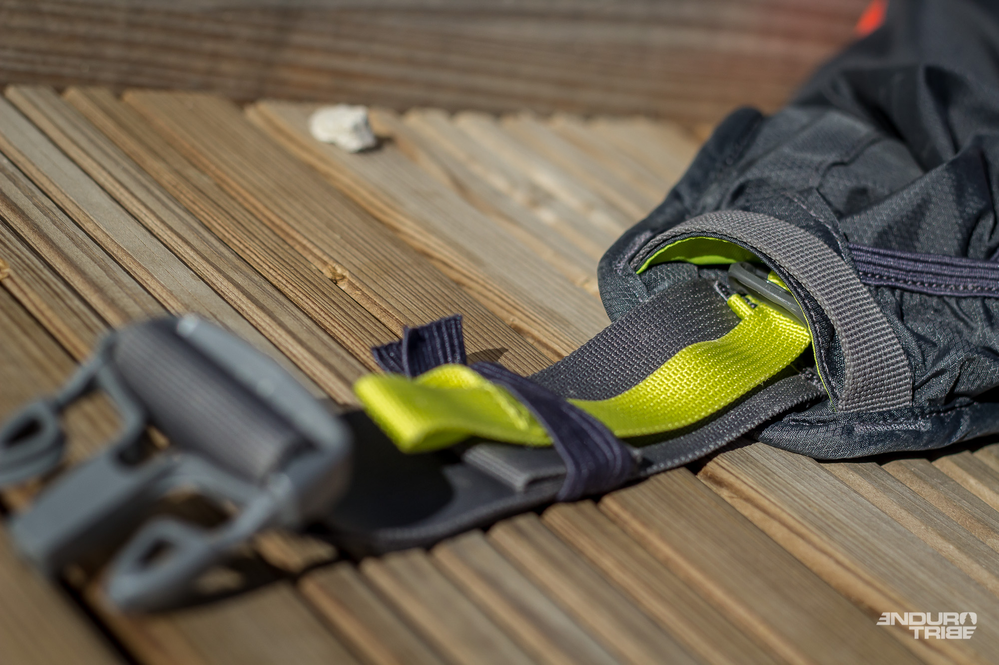 Il s’agit là du chargement théorique que les volumes de rangement acceptent sans compromettre leur fermeture. À l’usage, il faut cependant rester prudent. Plusieurs ajustements et questionnements sont nécessaires pour en tirer pleinement parti. Ceinture ainsi remplie, le système de serrage et de maintien est à la limite de ses capacités. la sangle principale a toujours tendance à glisser dans la boucle, se desserrant progressivement. Une fois la veste et un demi-litre d’eau mis de côté, l’usage de la ceinture s’en trouve facilité. En fait, elle a tendance à recevoir davantage qu’elle ne peut raisonnablement en transporter.