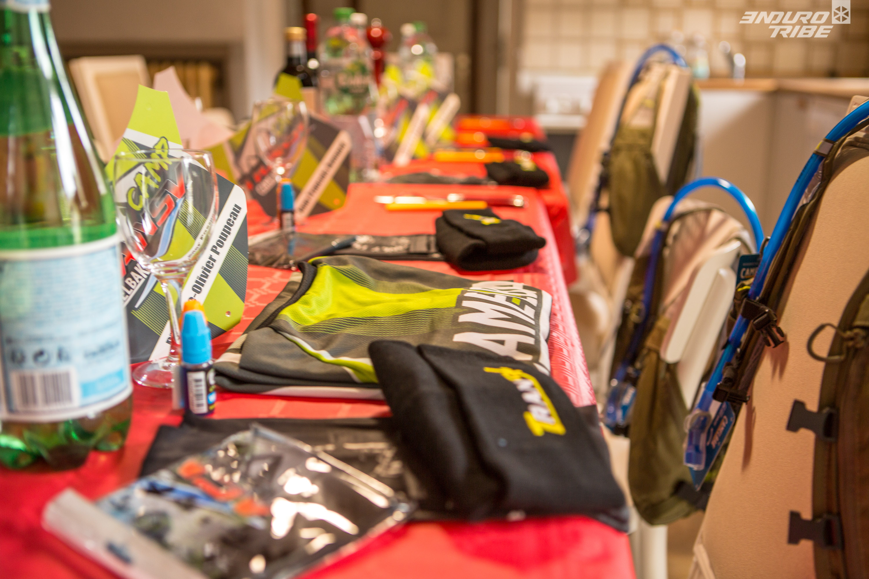 La soirée se termine autour d’un bon repas, les bras remplis de cadeaux (Camelbak collector, jersey, plaque de cadre…) et goodies.