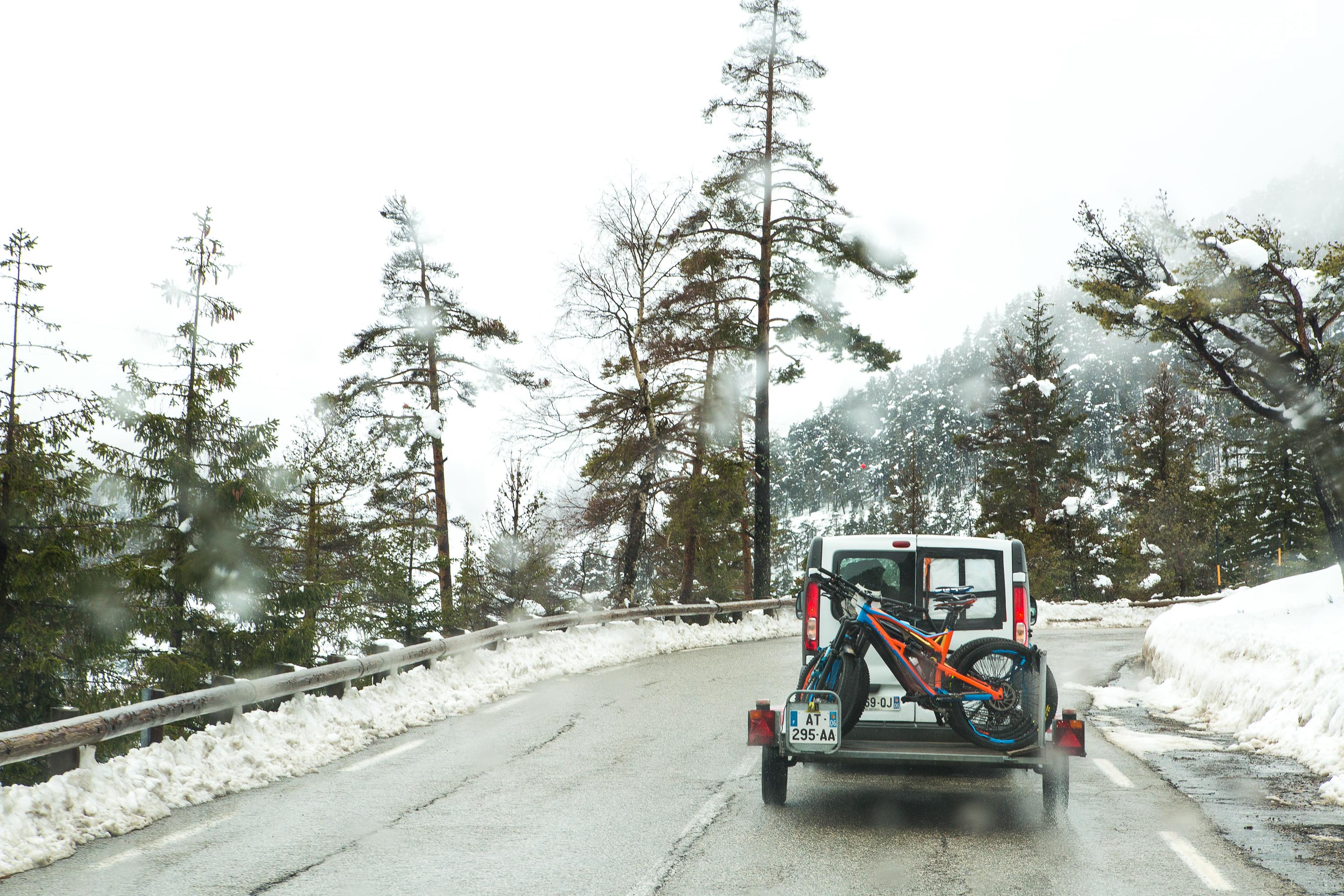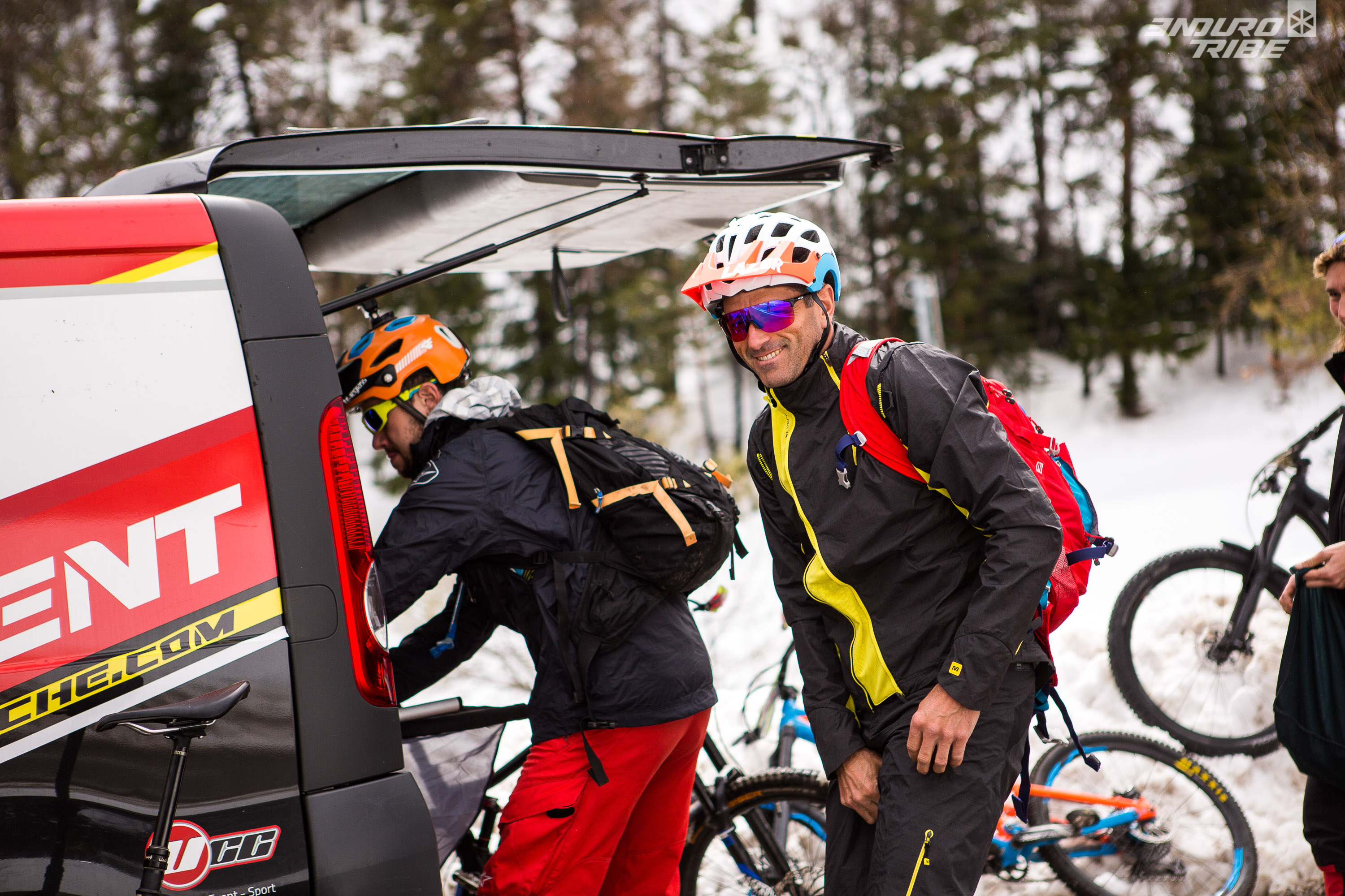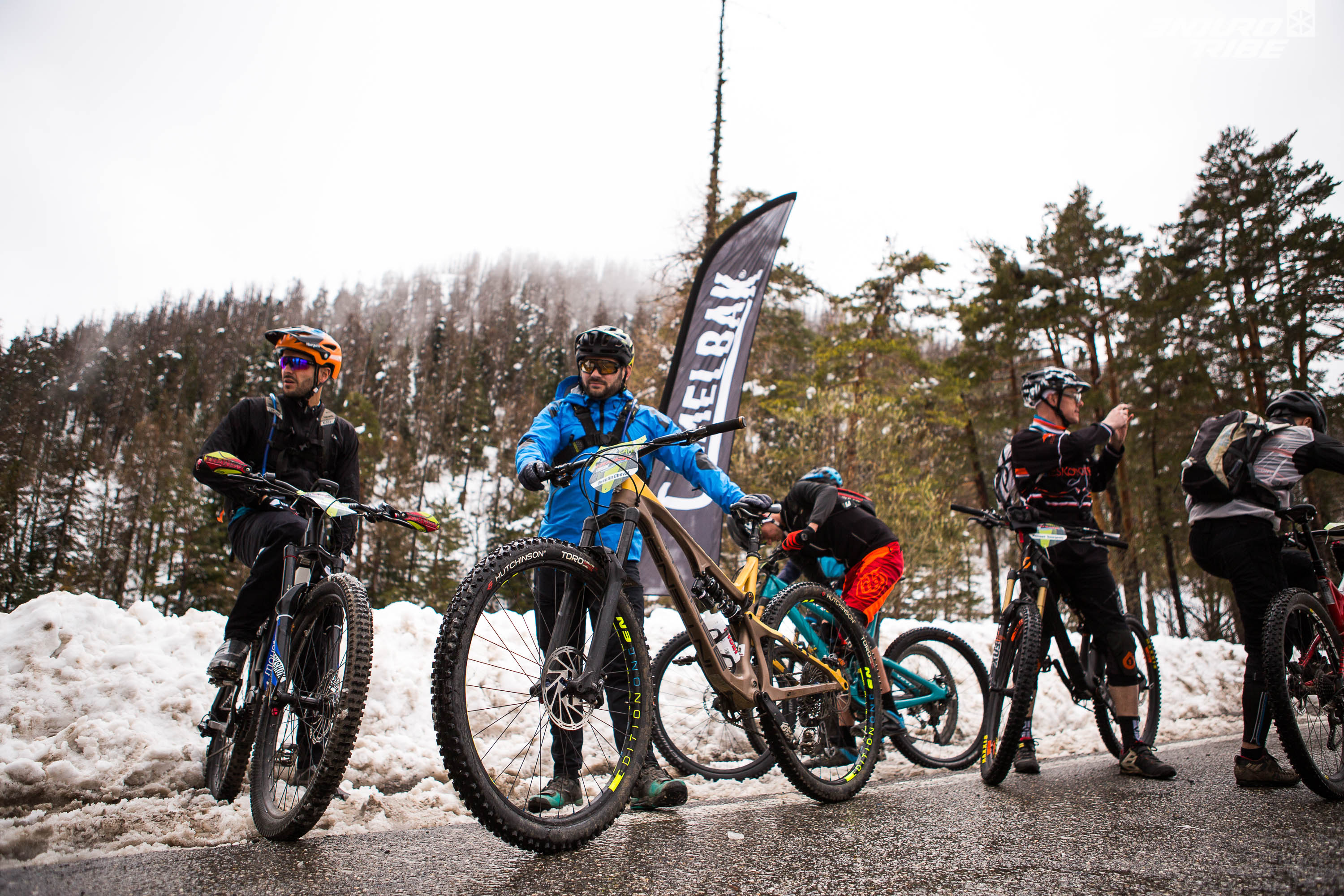 Cinq participants ont répondu à l’appel, aux pratiques majoritairement Rando/Trail/AM, encadrés par un staff UCC conséquent. Tous sont là pour se faire plaisir, passer un bon moment, faire du beau vélo de montagne. On est assez éloigné des pures reconnaissances que l’on pouvait supposer, à vouloir « limer » chaque épingle ou cailloux, optimiser son timing sur telle ou telle section de parcours. Un autre paramètre freine quelques peu les ardeurs, les conditions météo. Annoncée cataclysmique, la météo sera finalement clémente, mais avec en prime une invitée surprise, la neige qui continue de se poser sur les sommets azuréens.