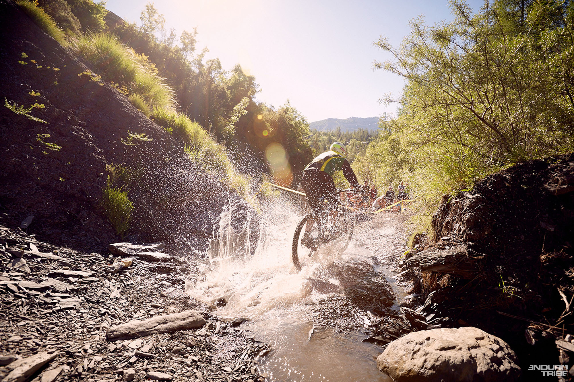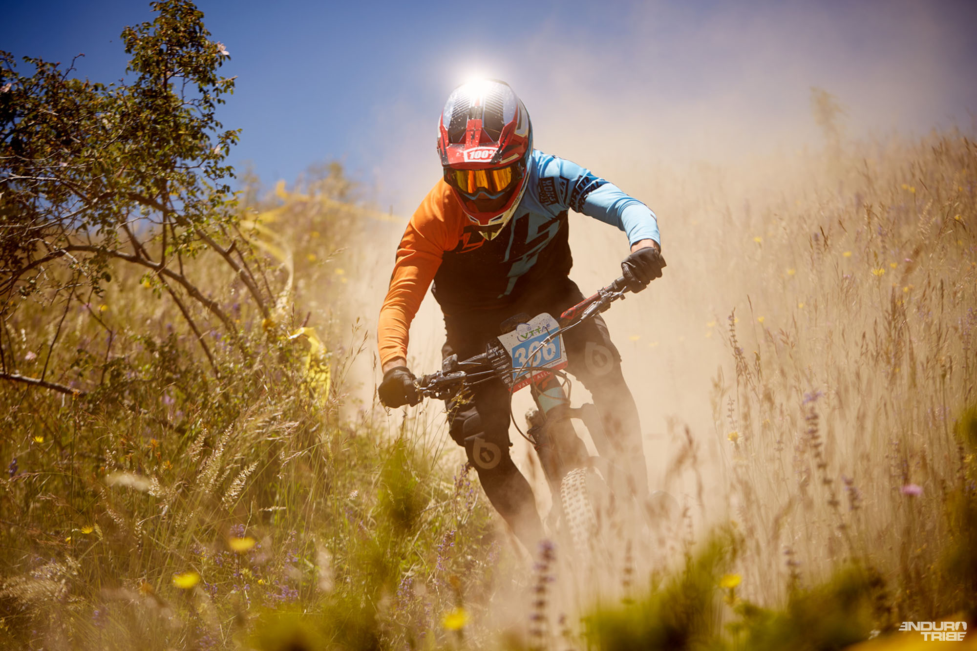 Dans une belle ambiance estivale baignée de soleil, le Val d’Allos a donc accueilli cette 14ème édition de la Tribe 10000 – la seconde manche des 7idp Enduro Series sur un format rallye. Des trails très secs et poussiéreux bordés de prairies fleuries ont été le terrain de jeu pour les trois cents pilotes inscrits à la compétition. Au menu de l’activité, 4 spéciales physiques avec des sections de pédalage marquées qui ont poussé bon nombre de pilotes à changer de braquet afin de gagner des précieuses secondes sur les parties roulantes. La longue SP1 qui dépassait les 15 minutes même pour les meilleurs et les v.a.e, en a déjà fait baver plus d’un avec des crashs et de la casse matérielle comme pour Chloé Gallean, ou Alexis Noirot forcé de finir la spéciale en single speed.