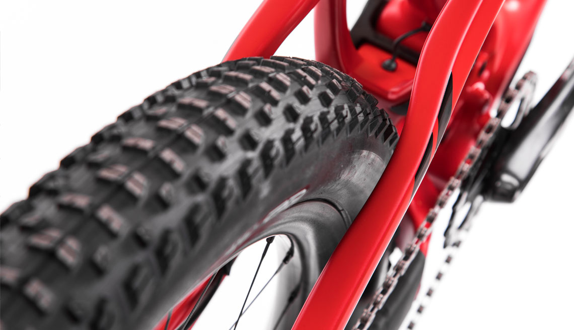 Le nouveau Mach 5.5 Carbon s’articule autour d’une cinématique DW Link développant 140mm de débattement arrière couplée à une fourche en 160mm à l’avant. Ce vélo en 27,5 pouces est conçu pour être chaussé de pneus de dernière génération en 2.6. Pivot a retenu cette fois-ci la solution (désormais classique) de l’entraxe arrière en boost 12x148mm, et non pas du « super boost 157 » comme elle avait pu le faire sur le Switchblade.