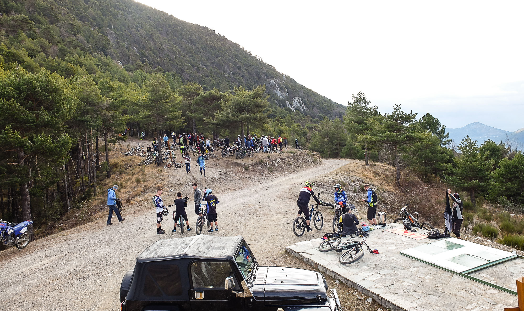 Direction le départ de la spéciale 1 au Col du Dragon avec vue mer !