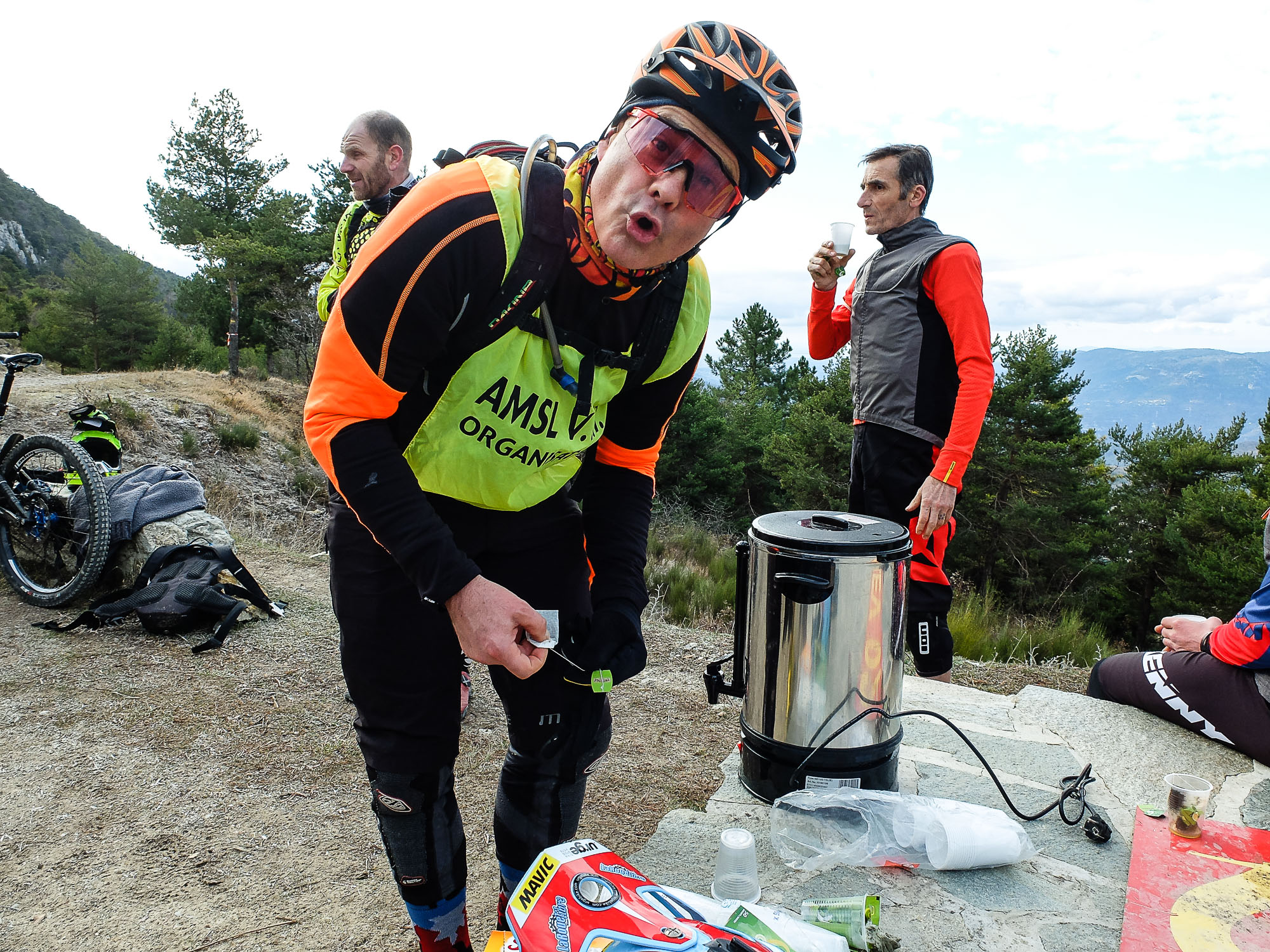 L’organisation a pensé à tout, même au thé chaud en attendant le départ et pour réchauffer les bénévoles.
