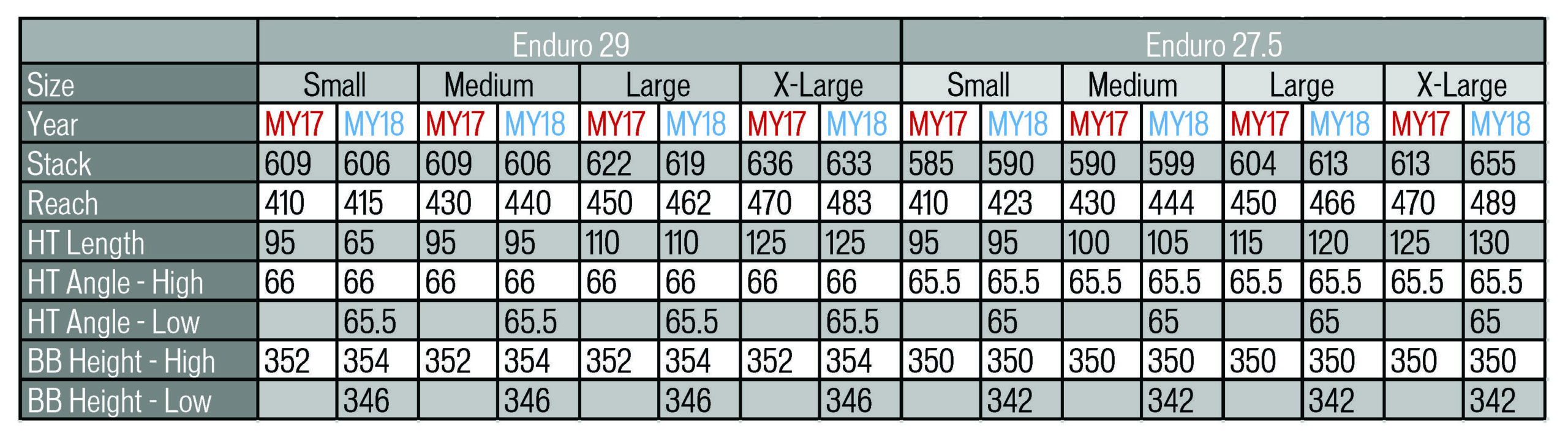 - Tous les modèles Enduro reçoivent des cintres en 800mm.
