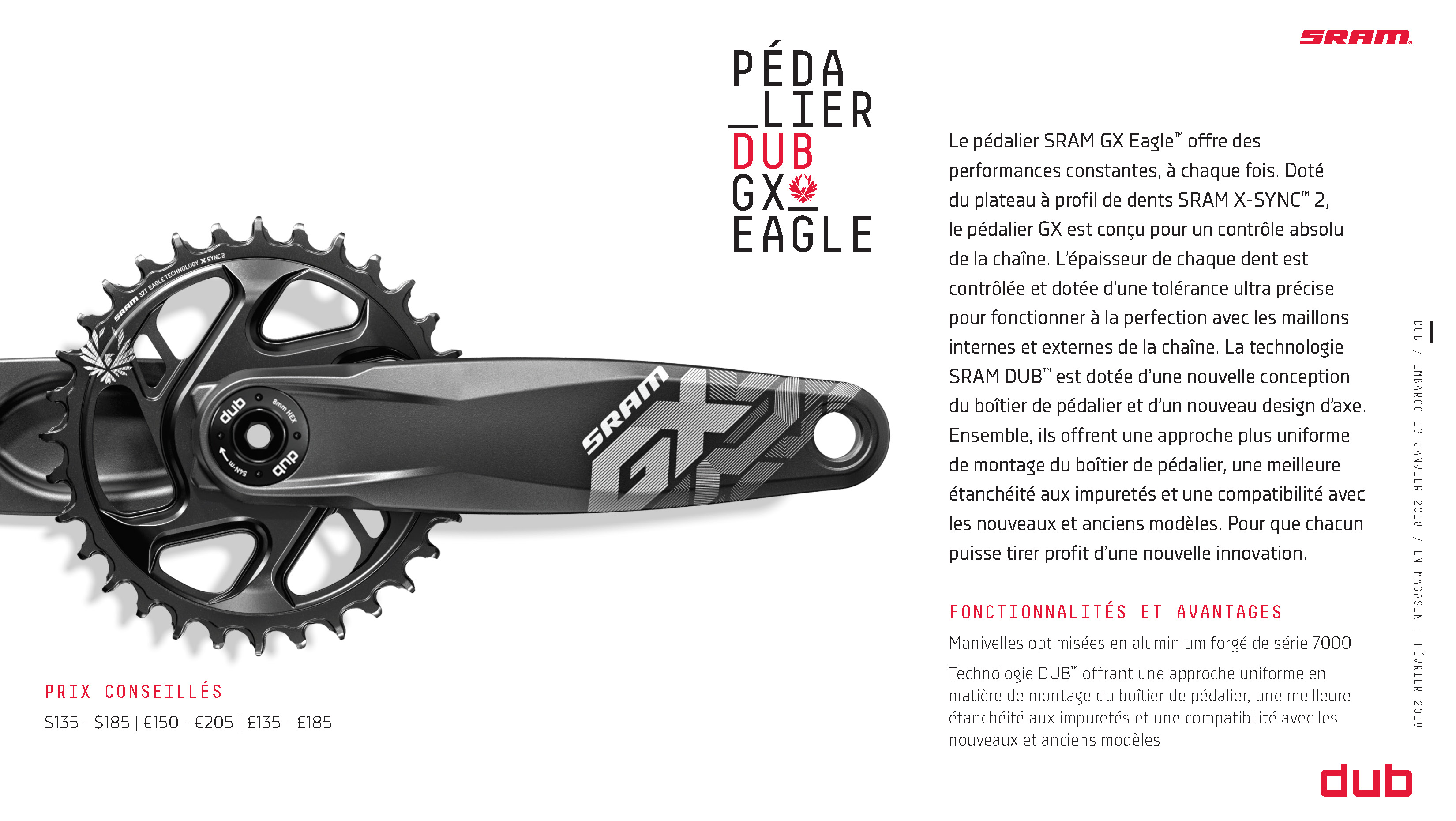Le géant américain débute cette année 2018 avec la présentation de produits qui lui tiennent particulièrement à coeur. Après le Boost et la transmission Eagle, SRAM s’attaque à dépoussiérer les boîtiers et pédaliers, terrain sur lequel la marque sait qu’elle doit se replacer. Place donc à la nouvelle famille de produits DUB !