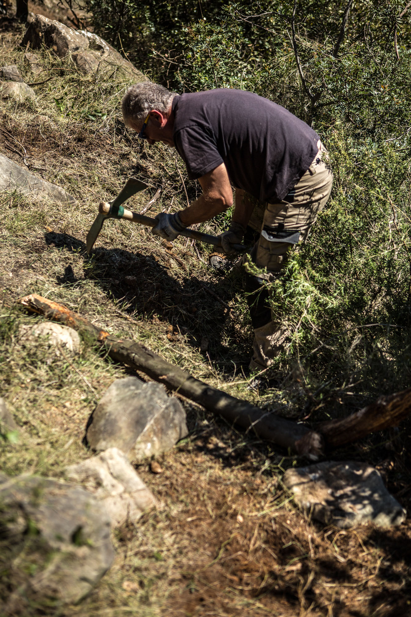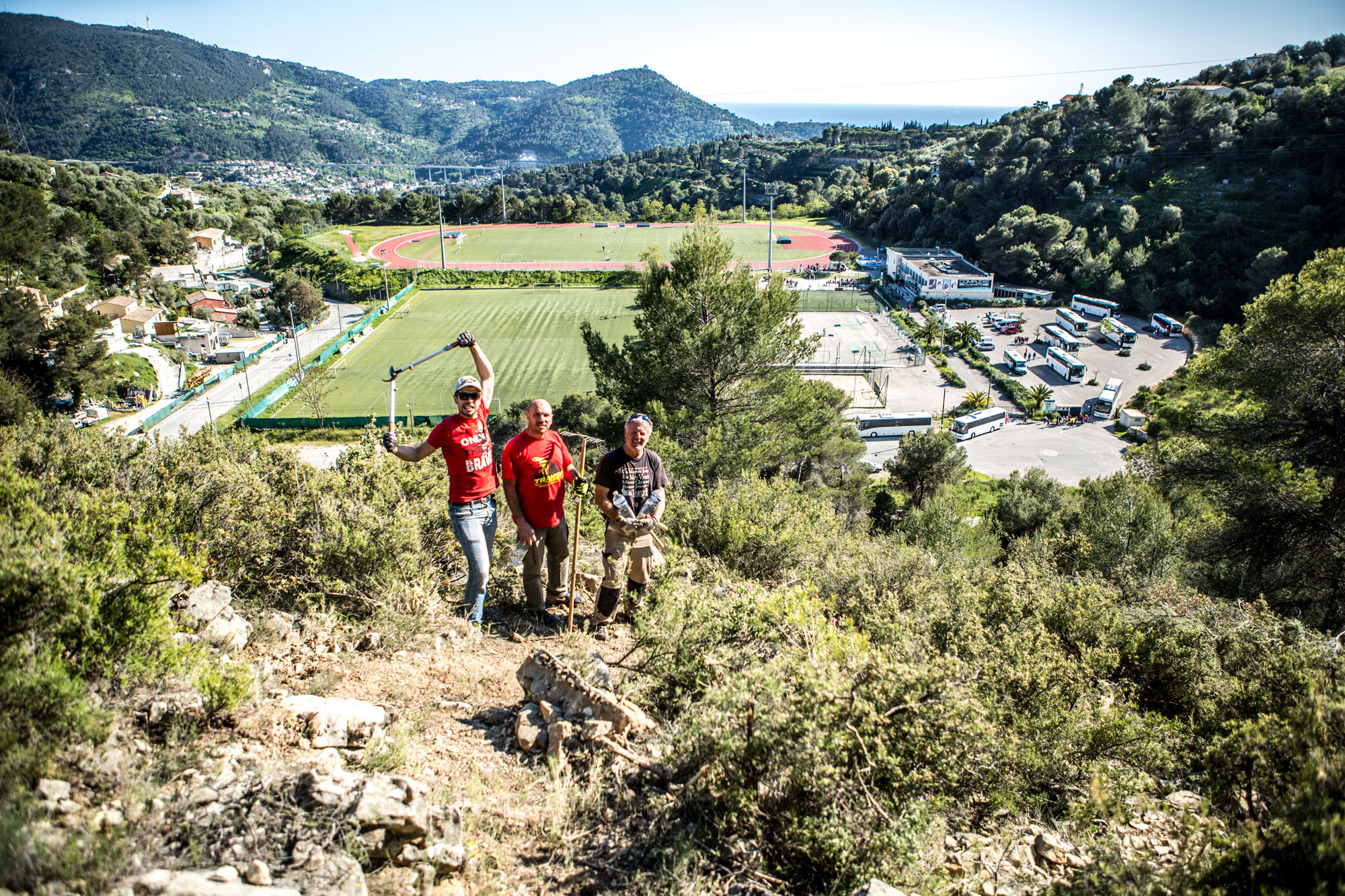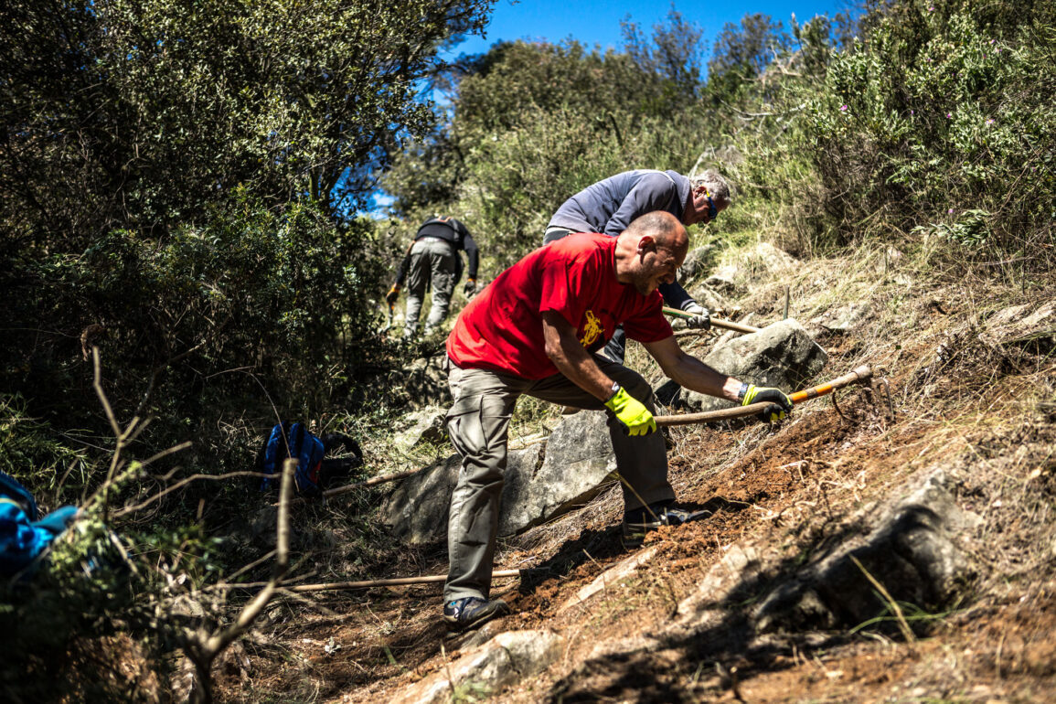 Si les services d’entretien des sentiers du PDIPR du Département des Alpes Maritimes sont très réactifs et interviennent efficacement sur les secteurs dont ils ont la charge, la Transvésubienne, dans son infinie recherche de passages exclusifs emprunte des sentiers depuis longtemps oubliés, ou encore non existant… Une fois l’autorisation de passage obtenue auprès des propriétaires concernés, il faut alors sortir serpettes, cisailles, pioches, sécateurs et surtout détermination pour (ré)ouvrir des singletracks d’anthologie, pour le plus grand plaisir des riders TransV.
