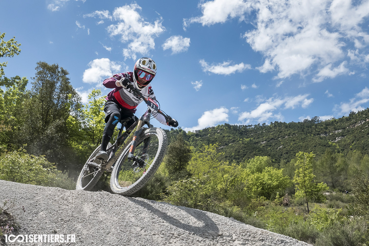 Mais avant de triompher dans son jardin, il lui fallait venir à bout des 4 spéciales tracées par Christian Tabart, et surtout contenir l’appétit de ses 249 adversaires du jour, dont une dizaine de pilotes habitués des EWS. Un plateau digne de coupe du monde et 8 nationalités représentées pour cette 3ème étape du championnat enduro des Alpes-Maritimes orchestré par 1001sentiers, qui s’est déroulée sous le soleil et sur des chemins aussi spectaculaires que ludiques à rider, mixant forêts et terres grises, hautes vitesses et épingles sinueuses, sentiers classiques et passages quasi-freeride dans les roubines…