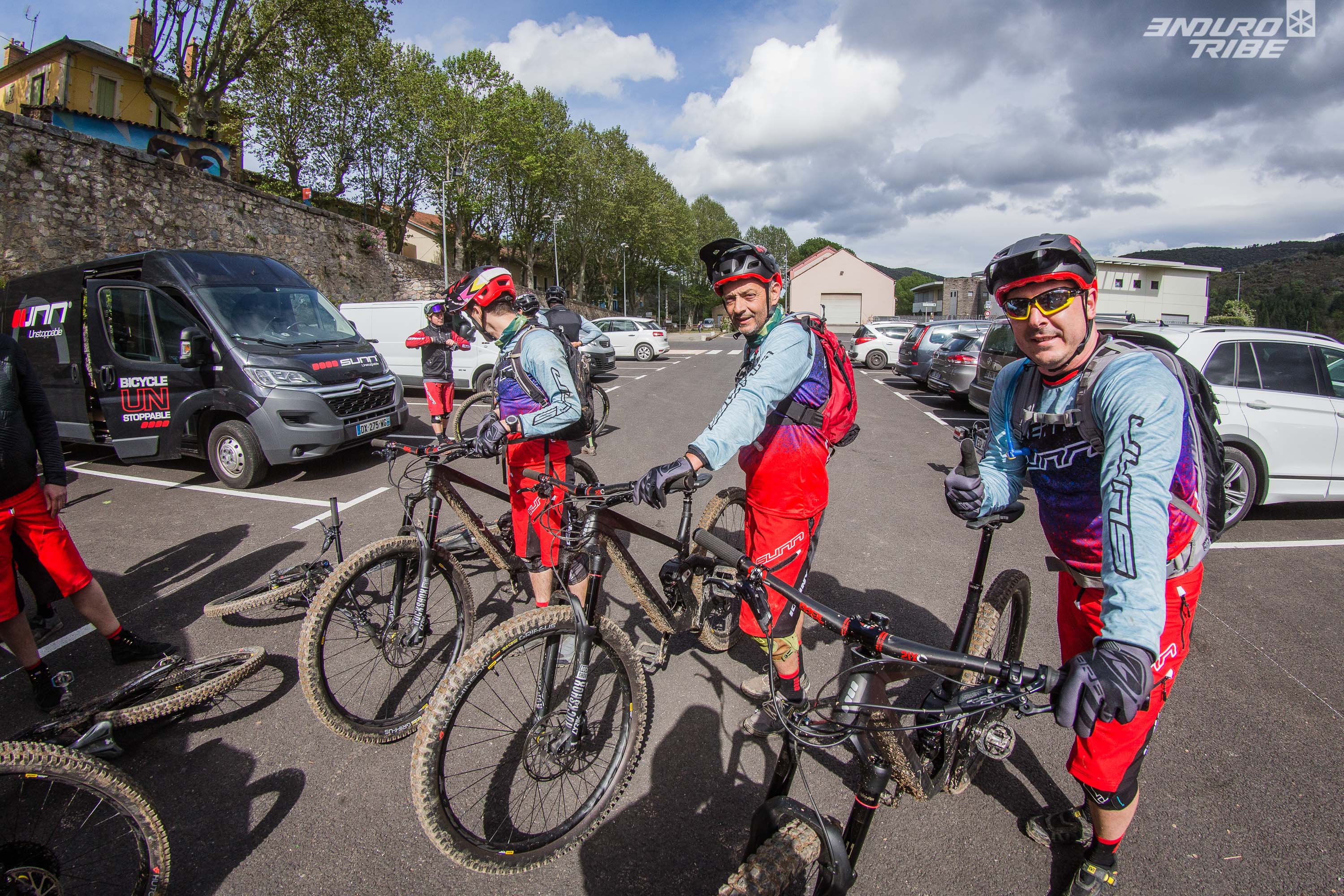 Nous voici donc à Olargues, terre d’Enduro par nature, et encadrés consciencieusement par Théo Galy et Kevin Miquel, brevets d’état et pilotes Enduro World Series de leurs états. À notre disposition, une flotte de Sunn Kern AM et EN 29 Finest, le coeur de la gamme.