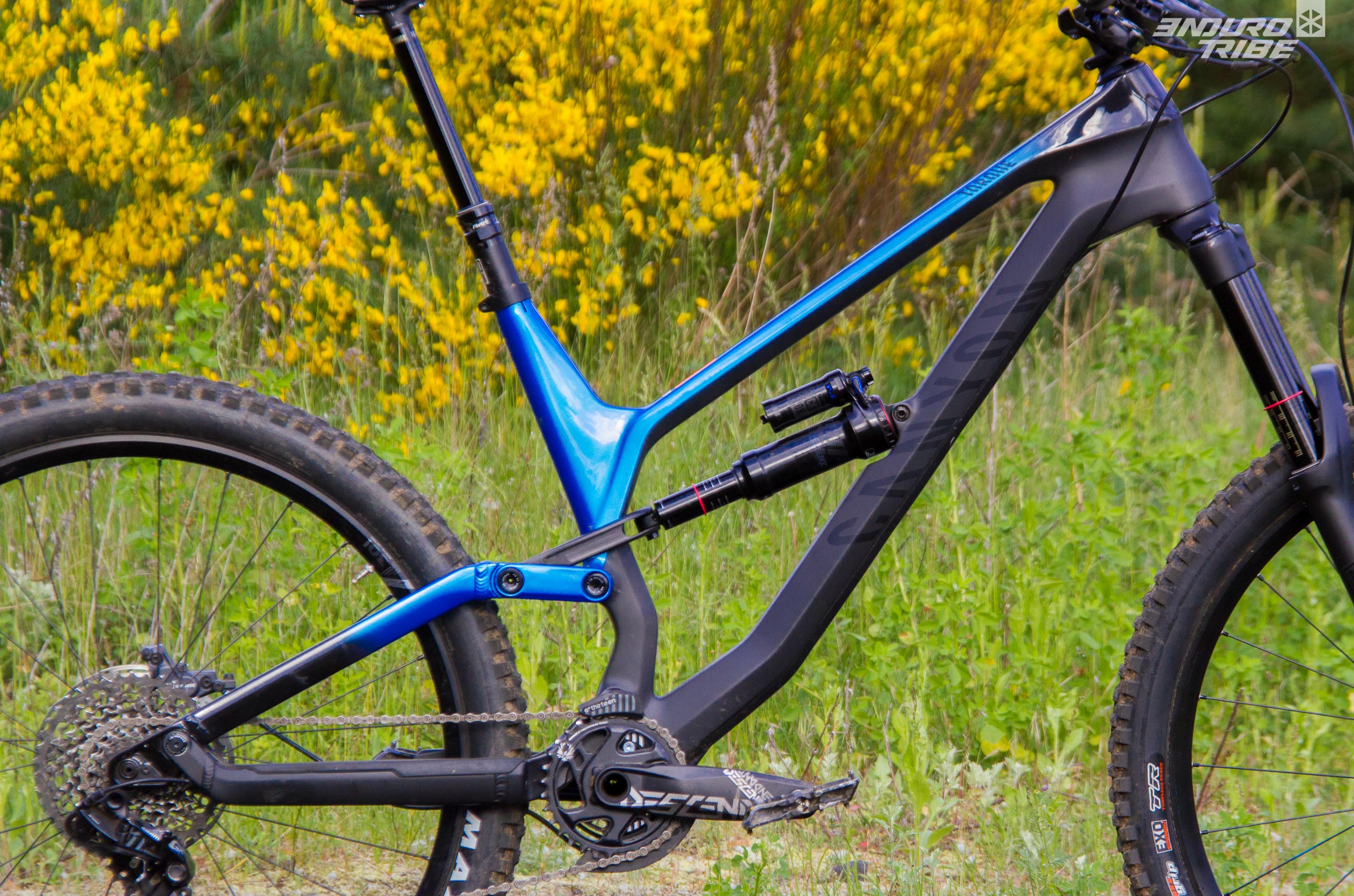 D’entrée de jeu, deux traits de caractère se distinguent et me sautent aux yeux. Le premier, comme pour le Canyon Spectral, est le comportement de la suspension arrière. Clairement très sensible en début de course et onctueuse dans ses premiers centimètres, elle s’affermit fortement une fois le SAG dépassé. Cependant la transition entre ces deux phases est fluide mais bien palpable.