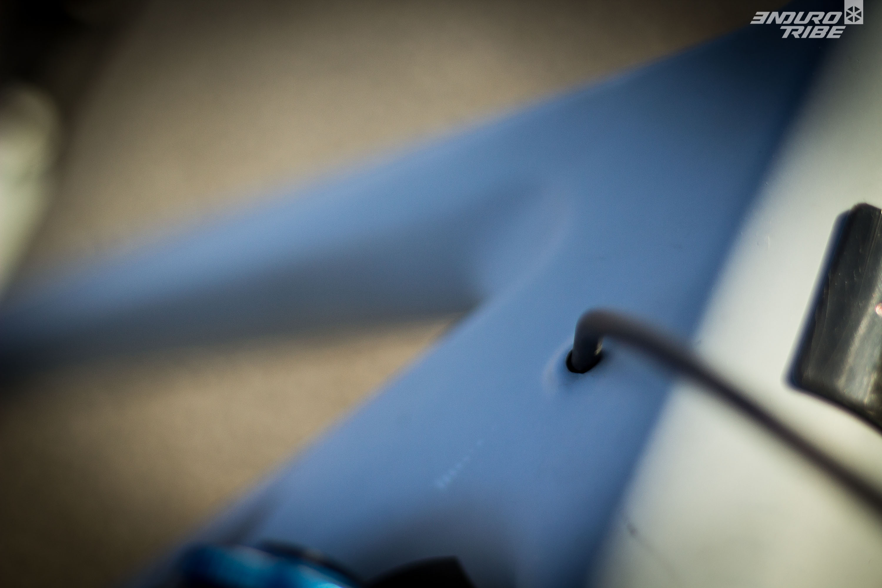 Le Santa Cruz Bronson 3 est doté d’un œillet sur la biellette basse que l’on peut inverser pour faire varier la positon de Hi vers Lo – haute ou basse – ou l’inverse. Ce geste fait varier les angles de 0,3°, la hauteur du boitier et la longueur du toptube de 4mm.
