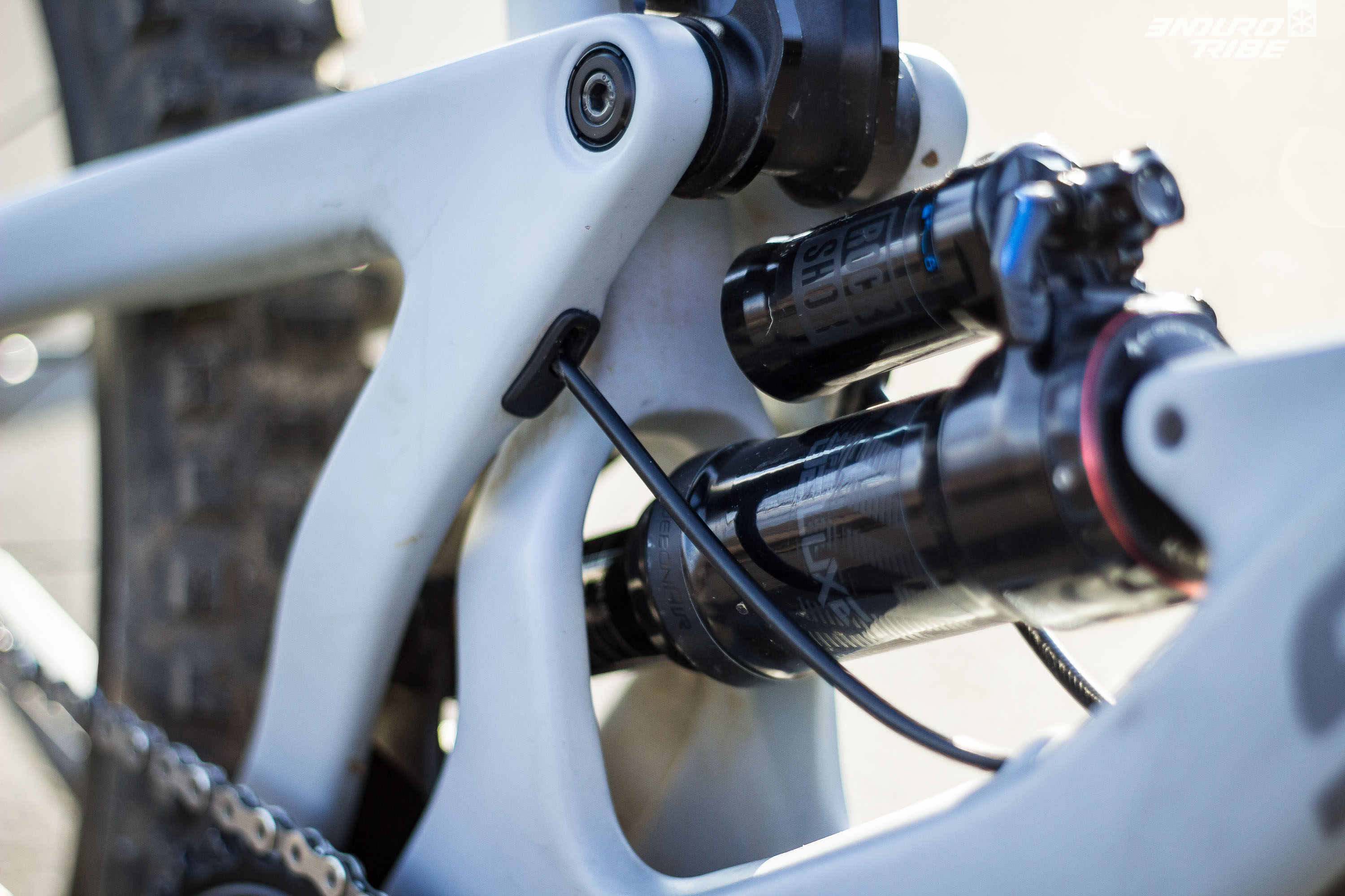 Face à son grand frère le Nomad, premier à avoir accueilli l’amortisseur en prise sur la biellette basse, le Bronson profite lui aussi de ce changement mais surtout d’un double montant sur le bras arrière.