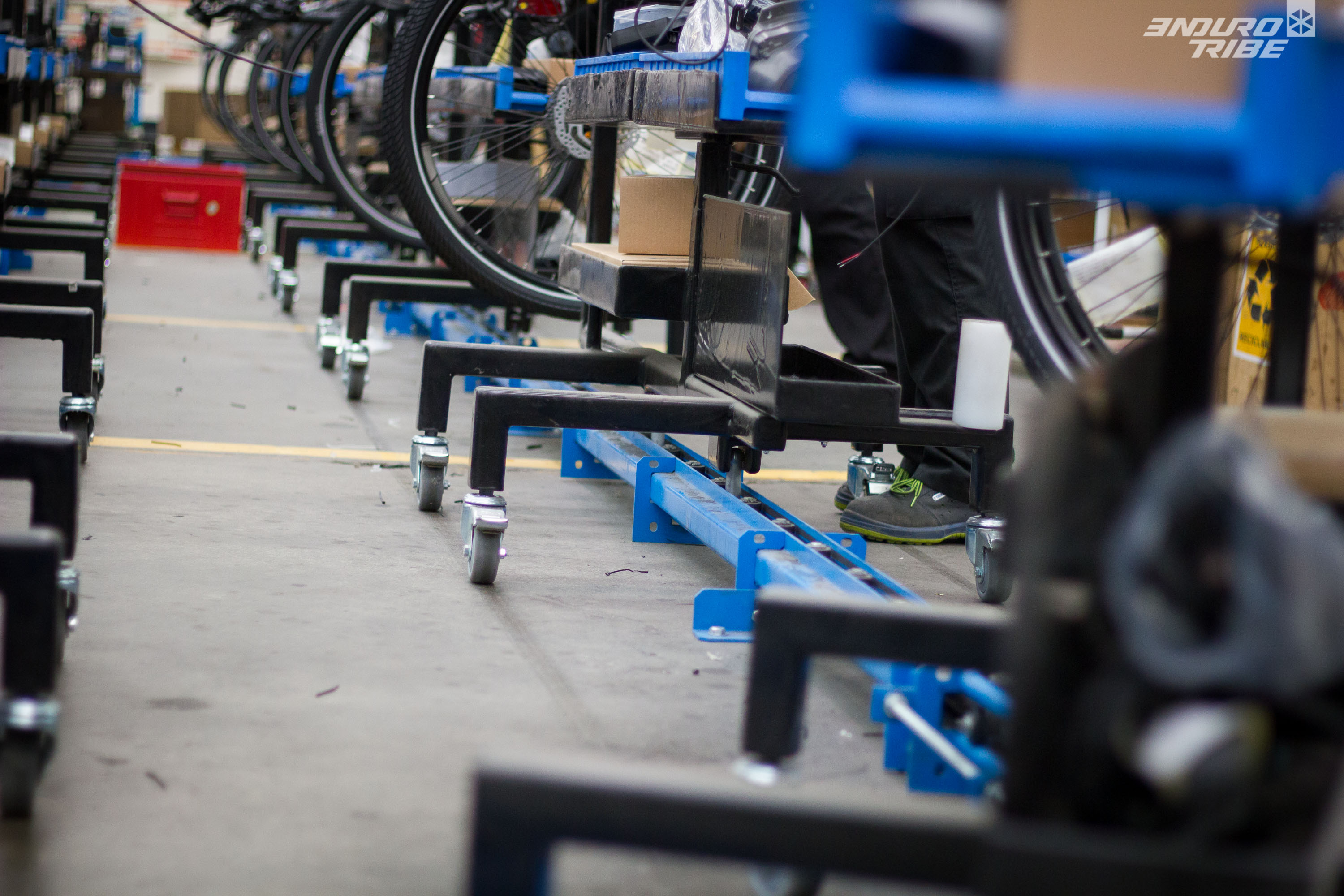 En fin de ligne d’assemblage, le vélo est complet, il n’y a plus qu’à l’emballer…