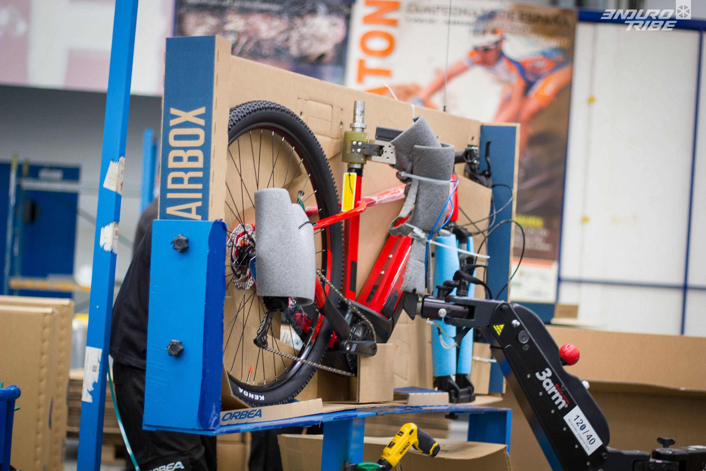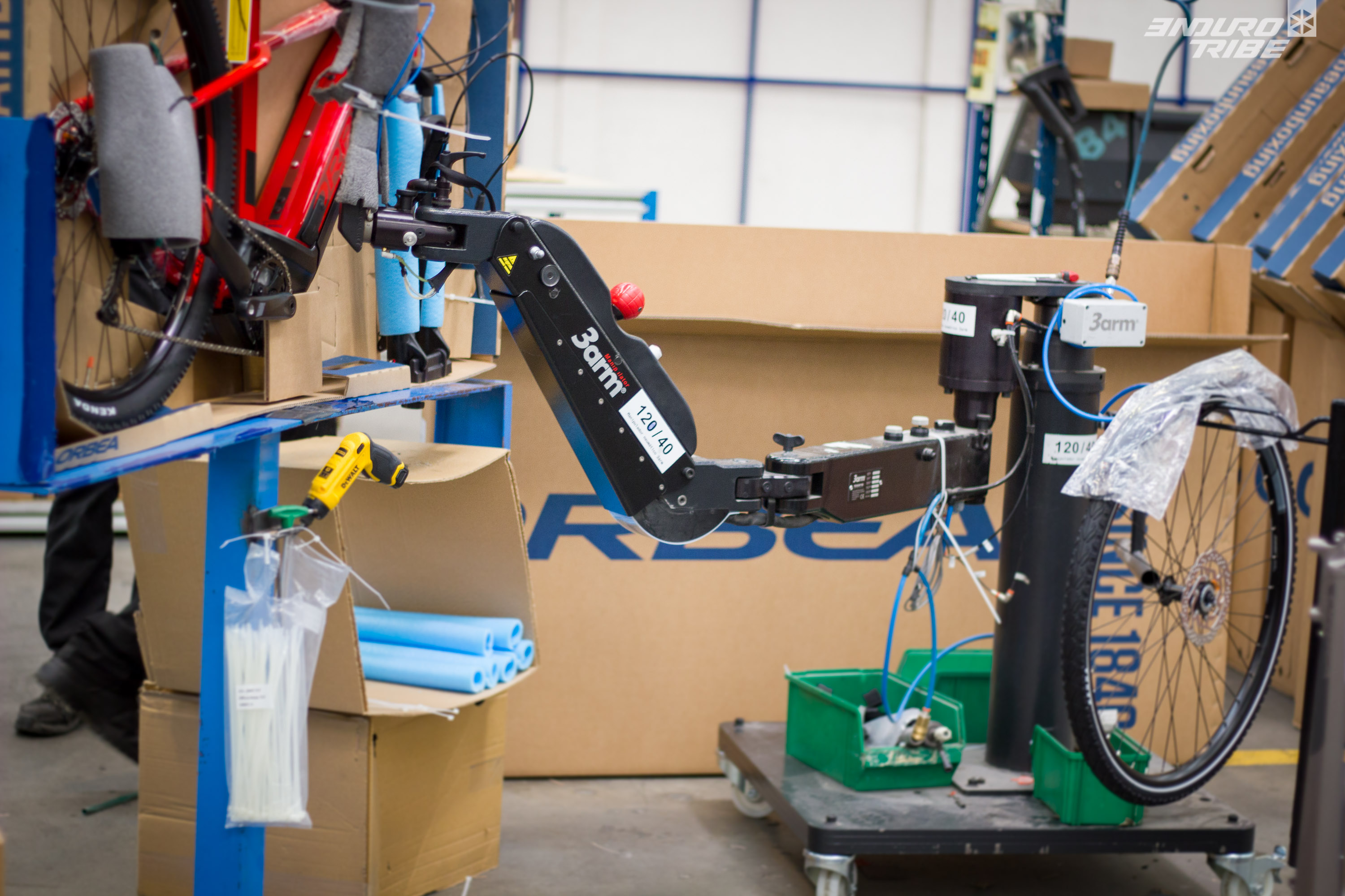 Ici aussi, un choix précis et déterminé de la part d’Orbea. Certaines marques conservent encore un poste non assisté, dédié au désassemblage partiel des vélos et à l’emballage manuel dans les cartons des vélos finis ! Une autre façon de faire…