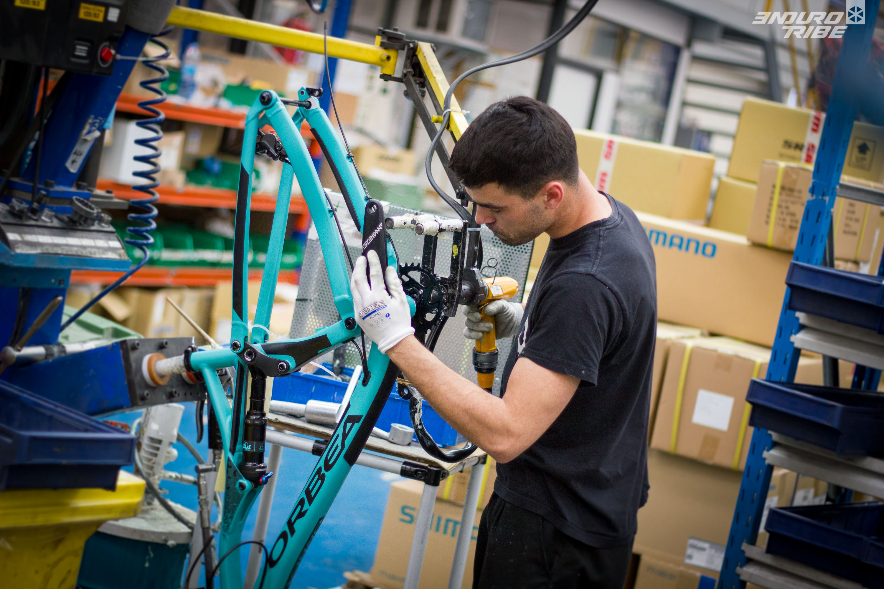 Pour faciliter la peinture et permettre au programme MyO d’aboutir, Orbea a aussi joué d’un autre détail de production important : celui de recevoir ses cadres en pièces détachées, et d’en assembler les éléments – triangles avant et arrière, biellettes, etc… – après passage en peinture.