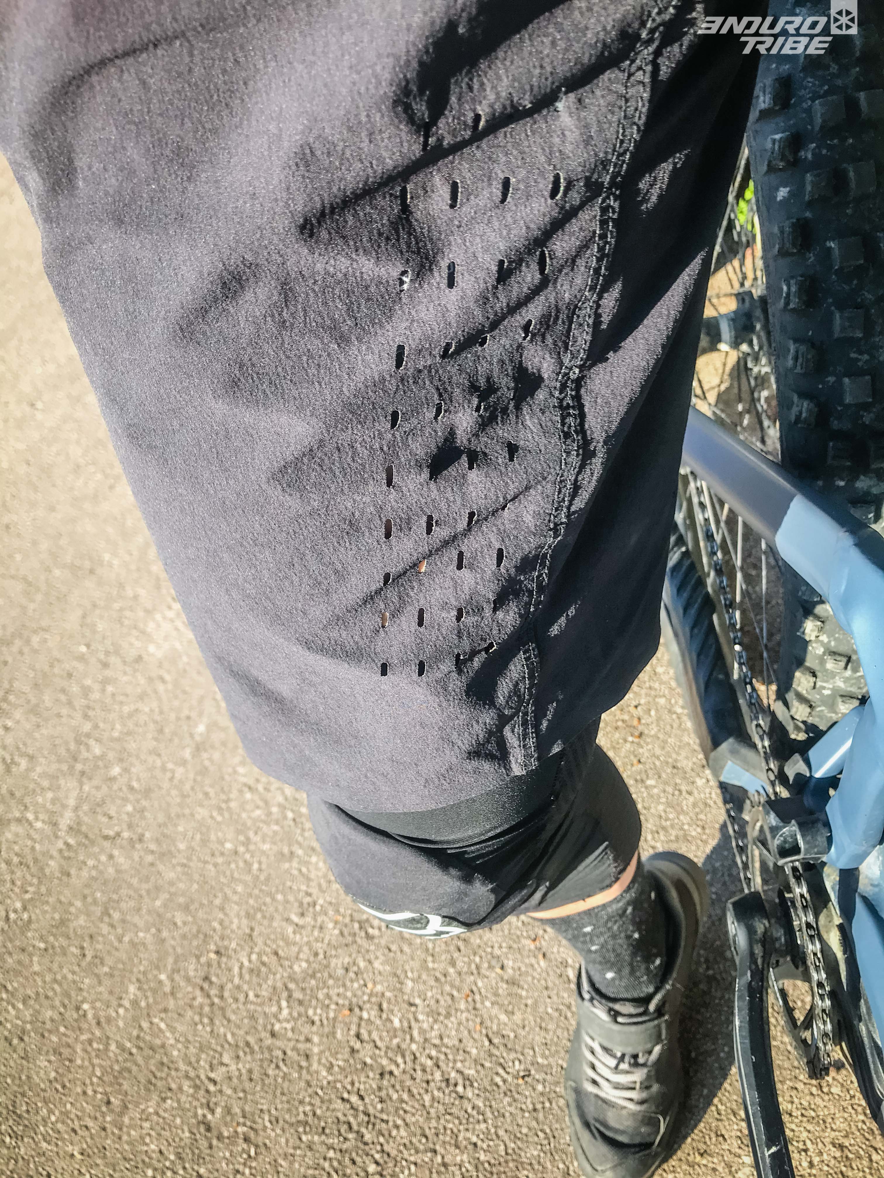 Un bandeau arrière permet un bonne ventilation et complète le confort. Il est un peu plus long que le short Fox (entrejambe 35cm) mais 1 ou 2cm de plus auraient été appréciés pour le port de n’importe quelles genouillères.